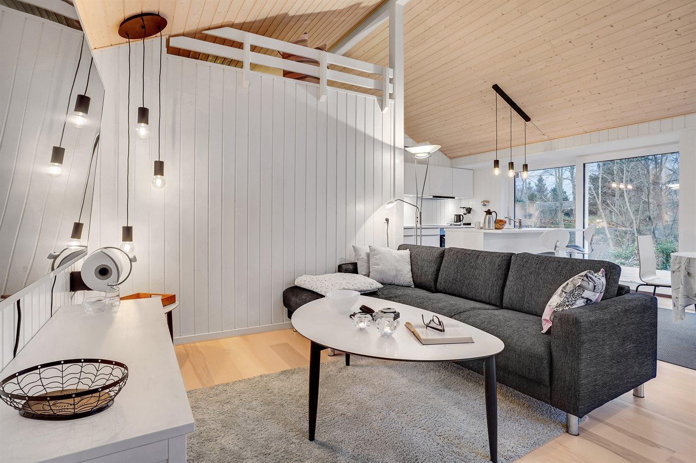 Huset er opført i 2021 og er overalt lyst med masser af lysindfald fra de store vinduespartier og med masser af luft takket være loft-til-kip. Indretningen er moderne og sommerlig.