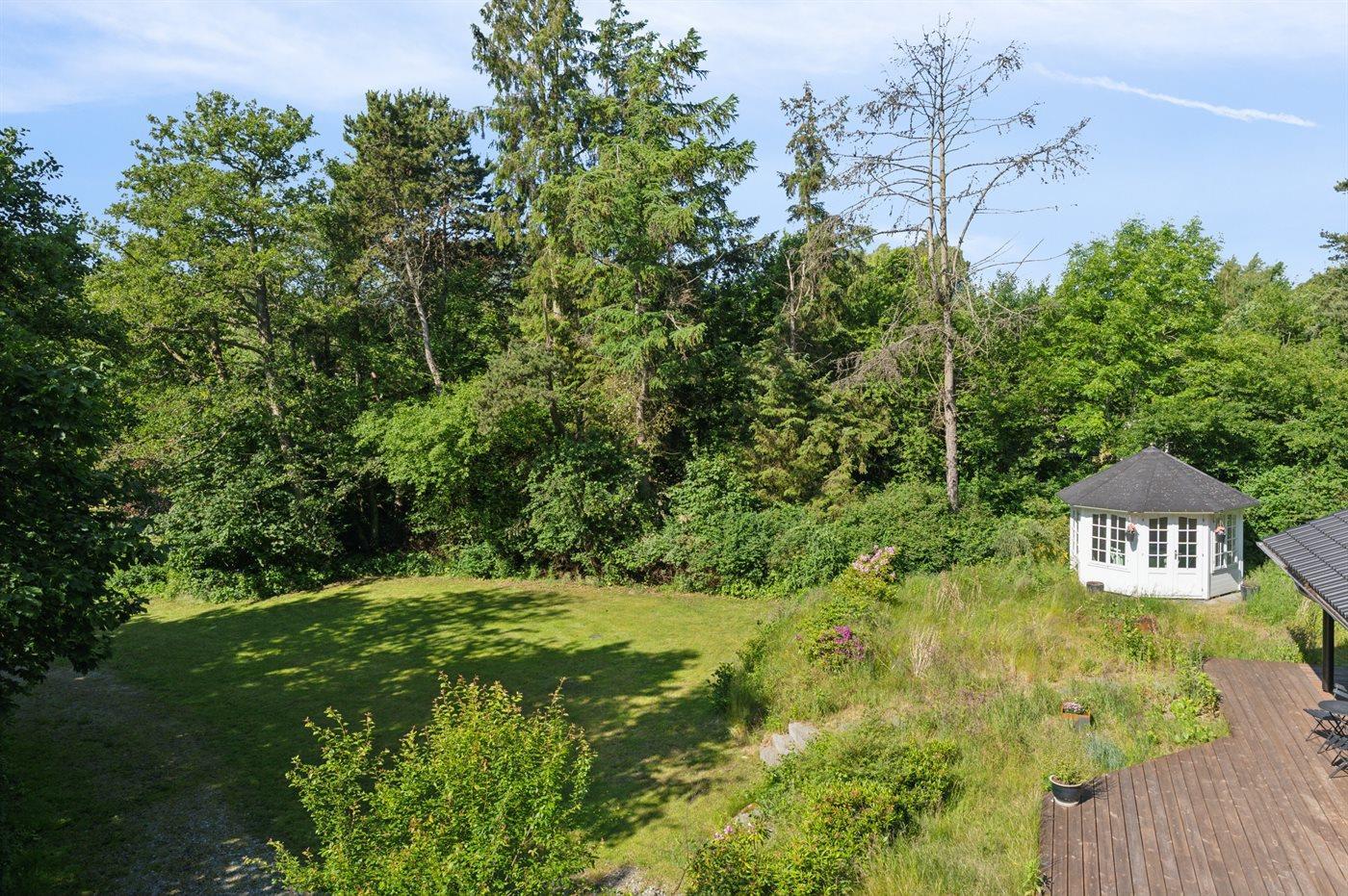 Den store grund er delvist naturgrund med ”vild med vilje” beplantning og delvist med græsplæne med god mulighed for leg og boldspil med børnene.
