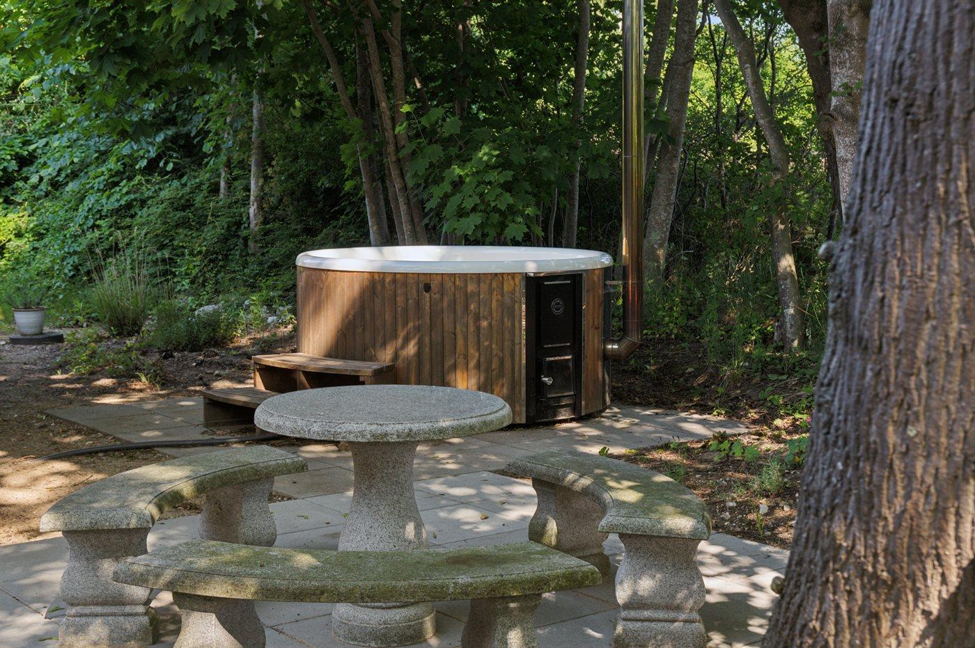 Der er mulighed for afslapning i det udendørs vildmarkskar til 6 personer.