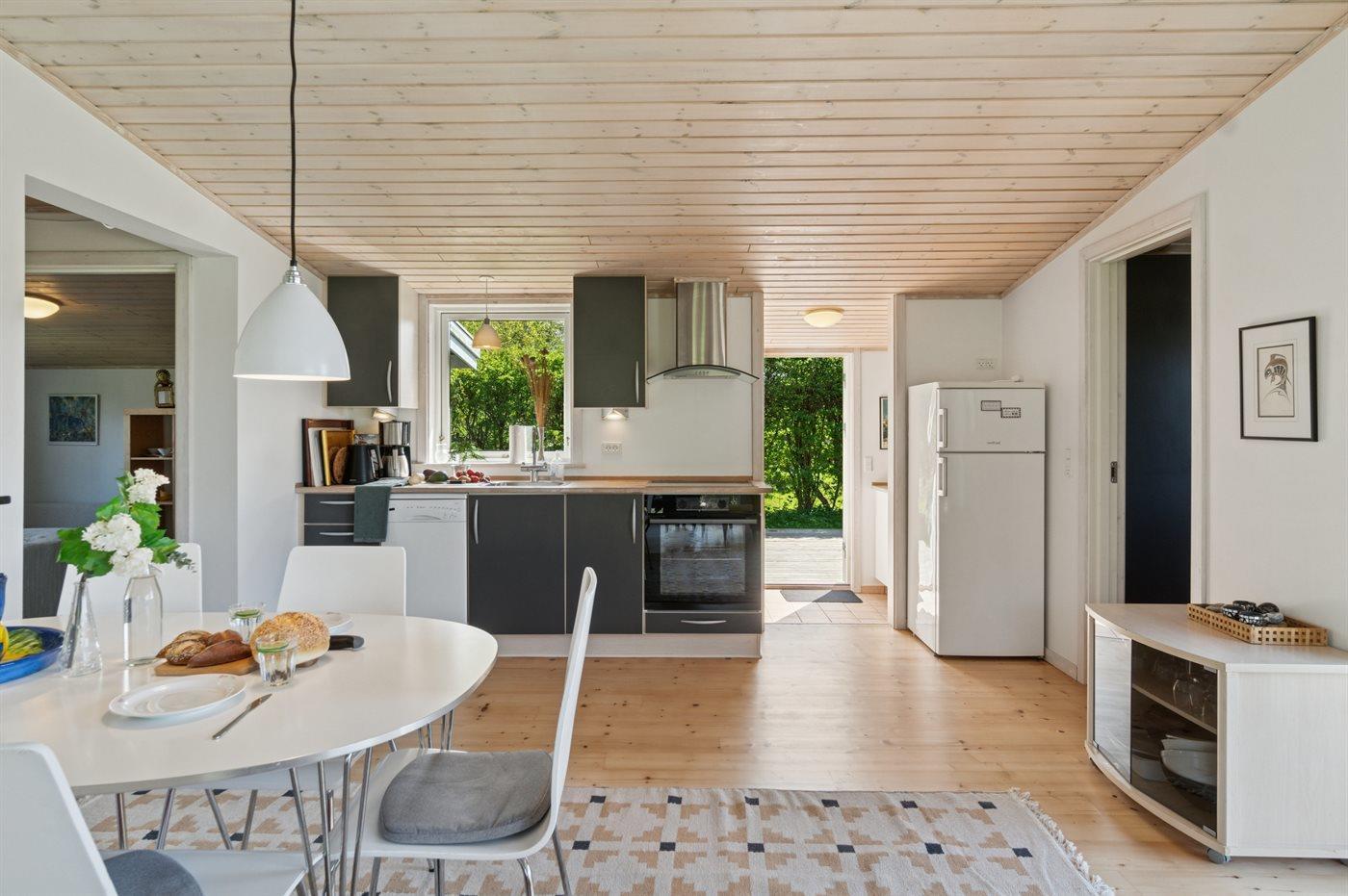 Køkkenet er udstyret med 1 køleskab. Der er 4 keramiske kogeplader, varmluftovn samt opvaskemaskine.