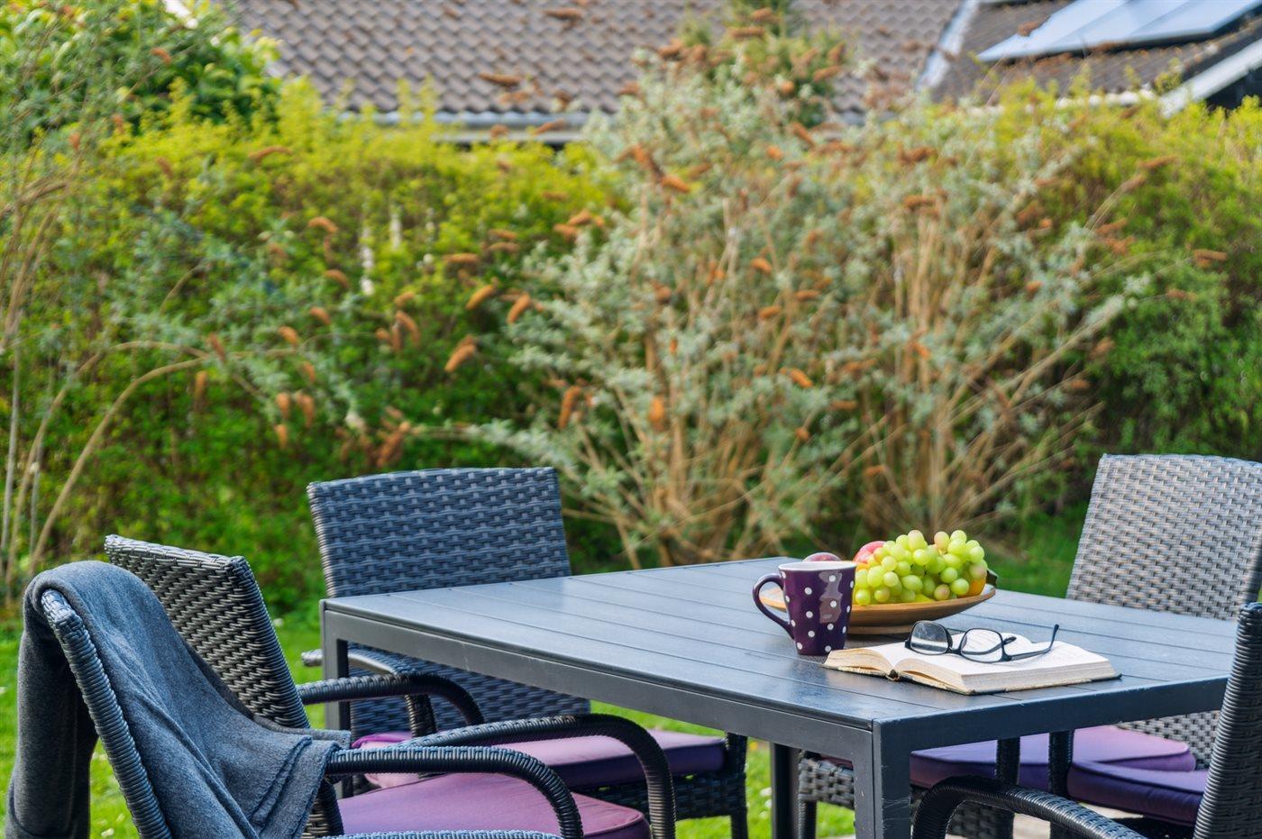 Hyggeligt sommerhus i rolige omgivelser tæt på børnevenlige sandstrande og med stor have og terrasse.