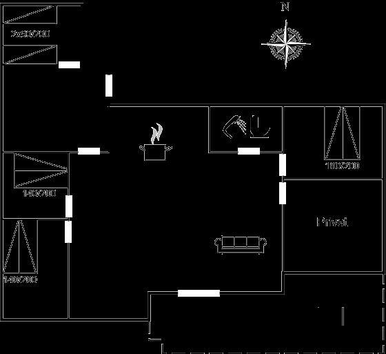 Der er i alt 4 soveværelser. Sovepladserne fordeler sig på: 6 sovepladser i dobbeltsenge. 2 sovepladser i enkeltsenge.