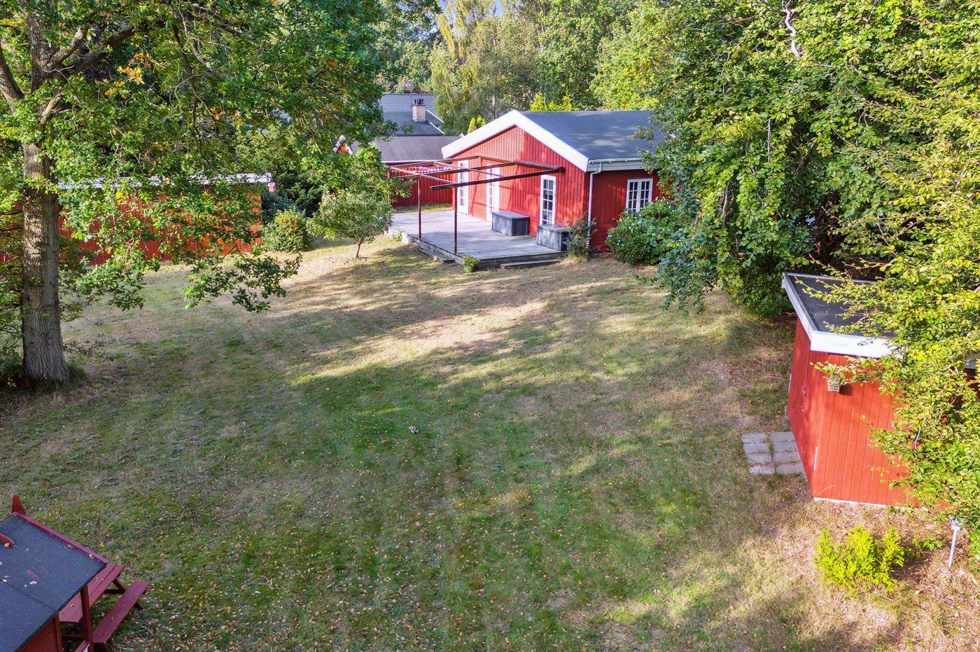 Den store grund på hele 2.445 kvadratmeter ligger fredeligt og ugenert med høj beplantning og træer hele vejen rundt om grunden. Grunden er indhegnet så børn og kæledyr kan færdes sikkert, og der er rig mulighed for leg og boldspil. Der er legehus. Der er garage med el-port til bilen.