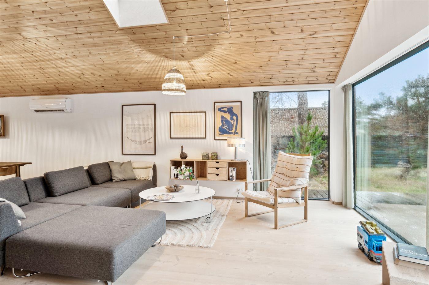 Nyd de luksuriøse omgivelser i dette sommerhus opført i 2023. Huset er bygget i kvalitetsmaterialer bl.a. med massive trægulve, snedkerkøkken, Corian bordplader og Vola armaturer. Huset er lyst og rummeligt med loft til kip i alle rum og med en moderne og sommerlig indretning. Huset ligger kun 200 meter fra stranden ved Sejerøbugten, hvor der er badebro. Huset er opført på en hyggelig naturgrund med høje grantræer, som bidrager til et sydlandsk præg.