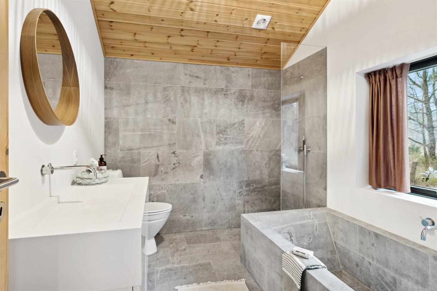 Der er 2 badeværelser med bruseniche og 2 toiletter. Der er gulvvarme på 2 badeværelser.. Badekar.