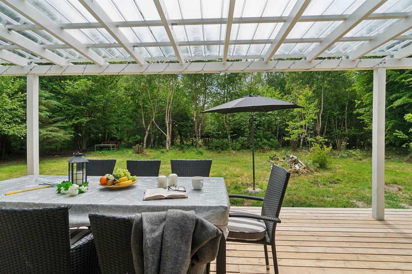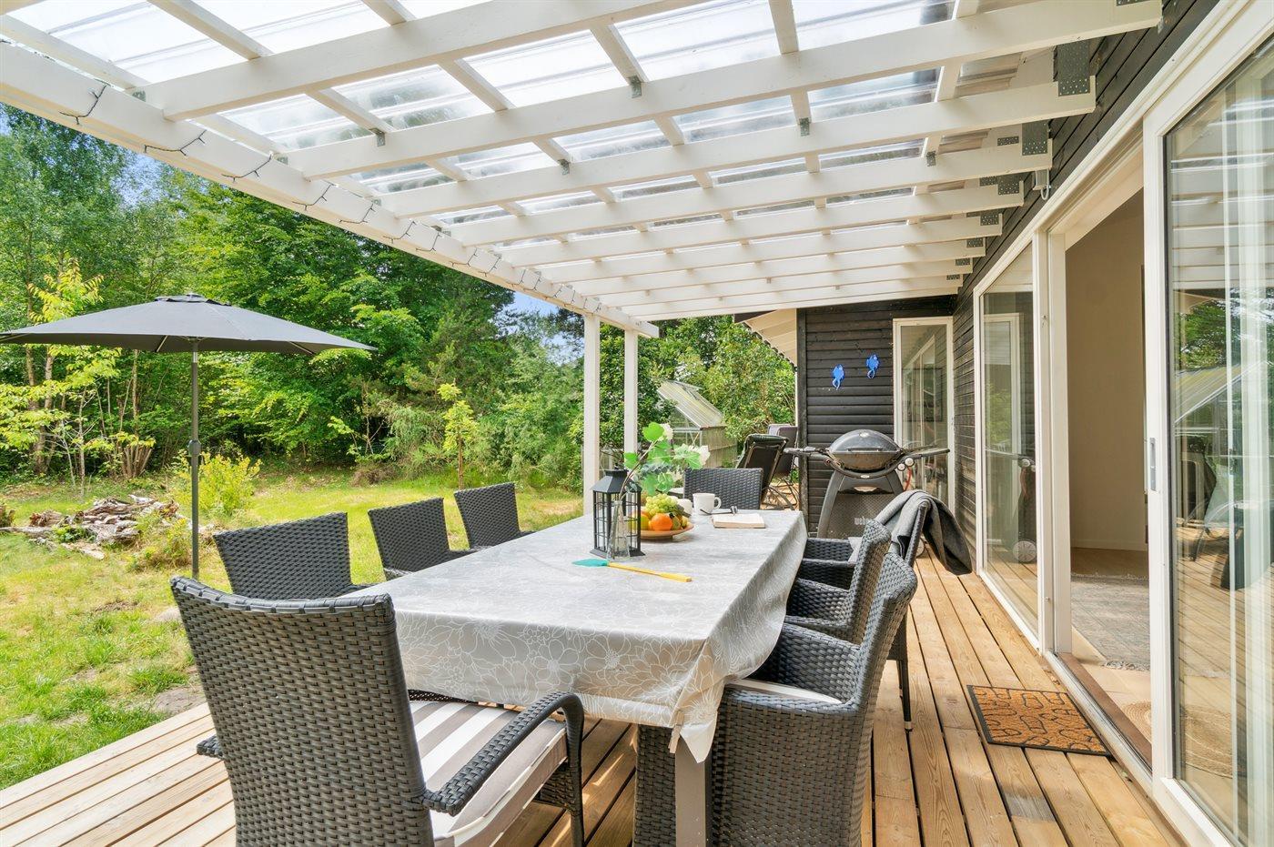 Ferieboligen er beliggende på en 1576 m² stor havegrund. Der er 425 m til havet. Nærmeste forretning er beliggende i en afstand af 1800 m. Der er en golfbane i en afstand af 3150 m. Desuden er der 32 m² overdækket terrasse. Grill til rådighed. Der er installeret stik til opladning af elbil. CEE stik. Med 11 kW ladeeffekt. Parkering ved ferieboligen.