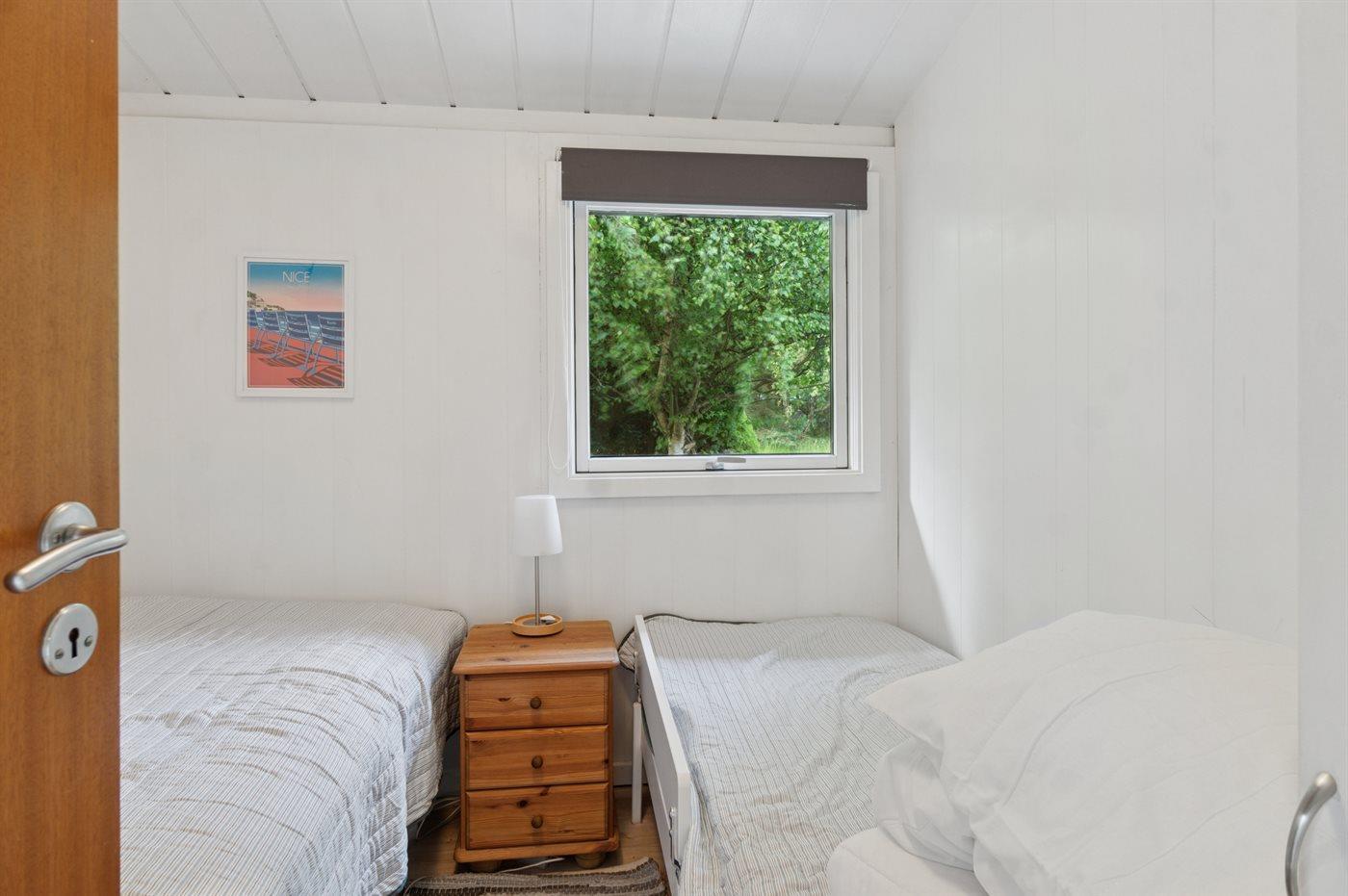 Der er i alt 4 soveværelser. Sovepladserne fordeler sig på: 6 sovepladser i dobbeltsenge. 2 sovepladser i enkeltsenge. 4 af disse sovepladser befinder sig i de 2 annekser. Derudover er der 1 stk. barneseng.
