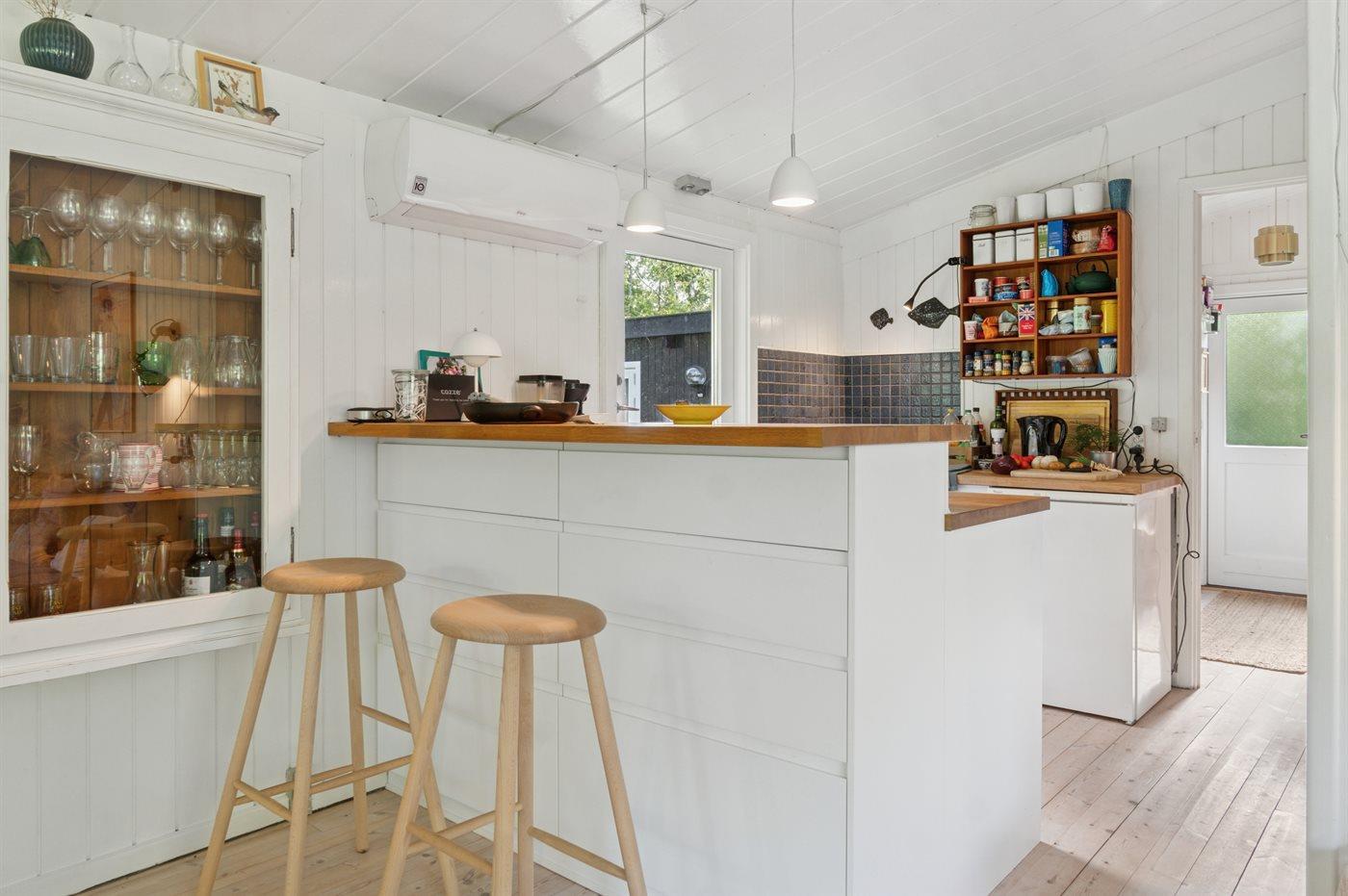 Køkkenet er udstyret med 2 køleskabe. Der er 4 keramiske kogeplader, varmluftovn samt opvaskemaskine.