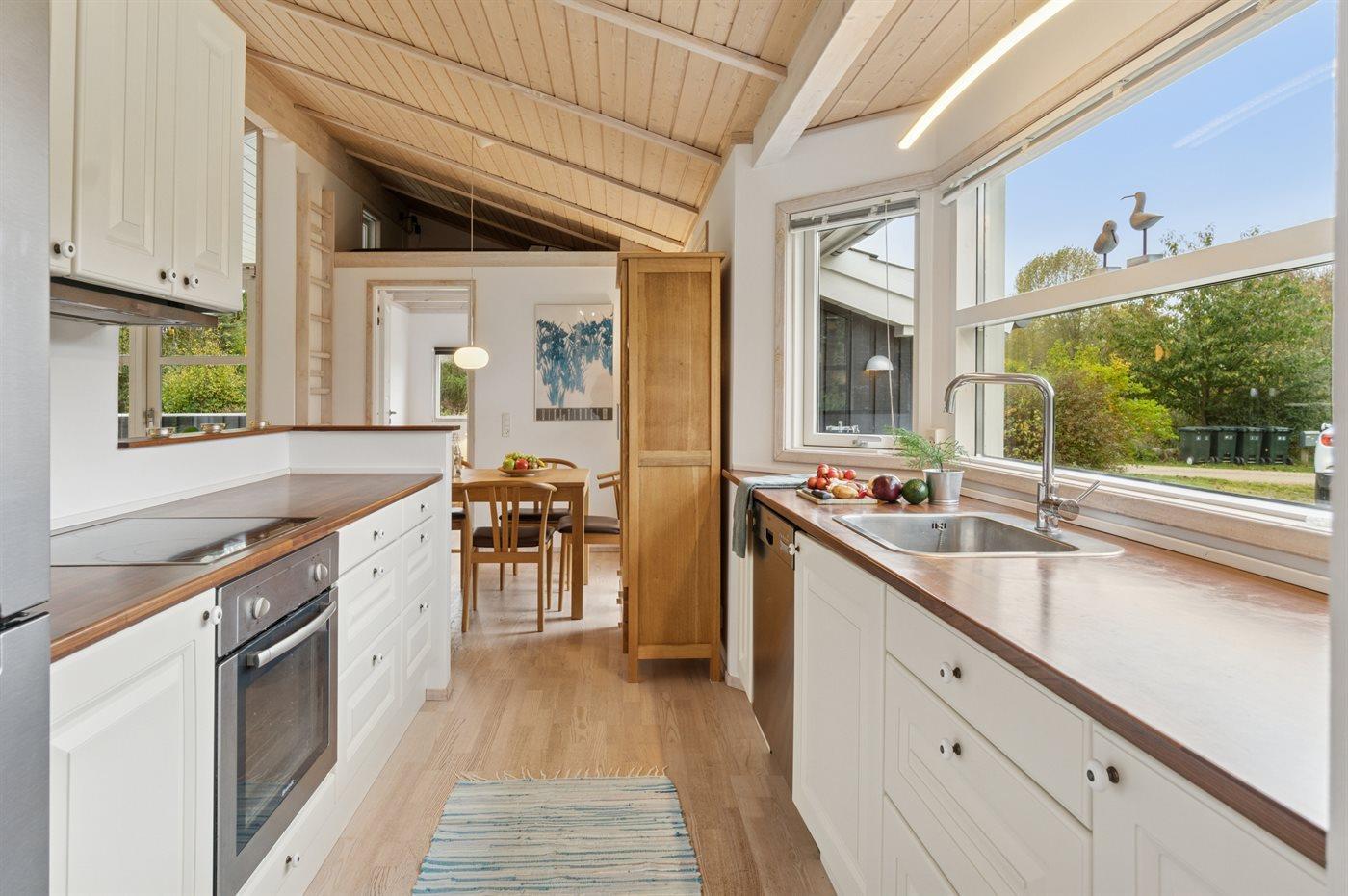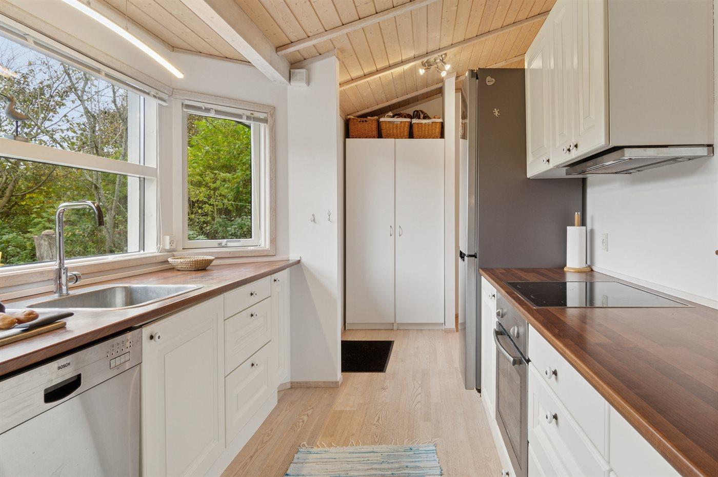 Køkkenet er udstyret med 1 køleskab. Der er 4 keramiske kogeplader, varmluftovn samt opvaskemaskine.