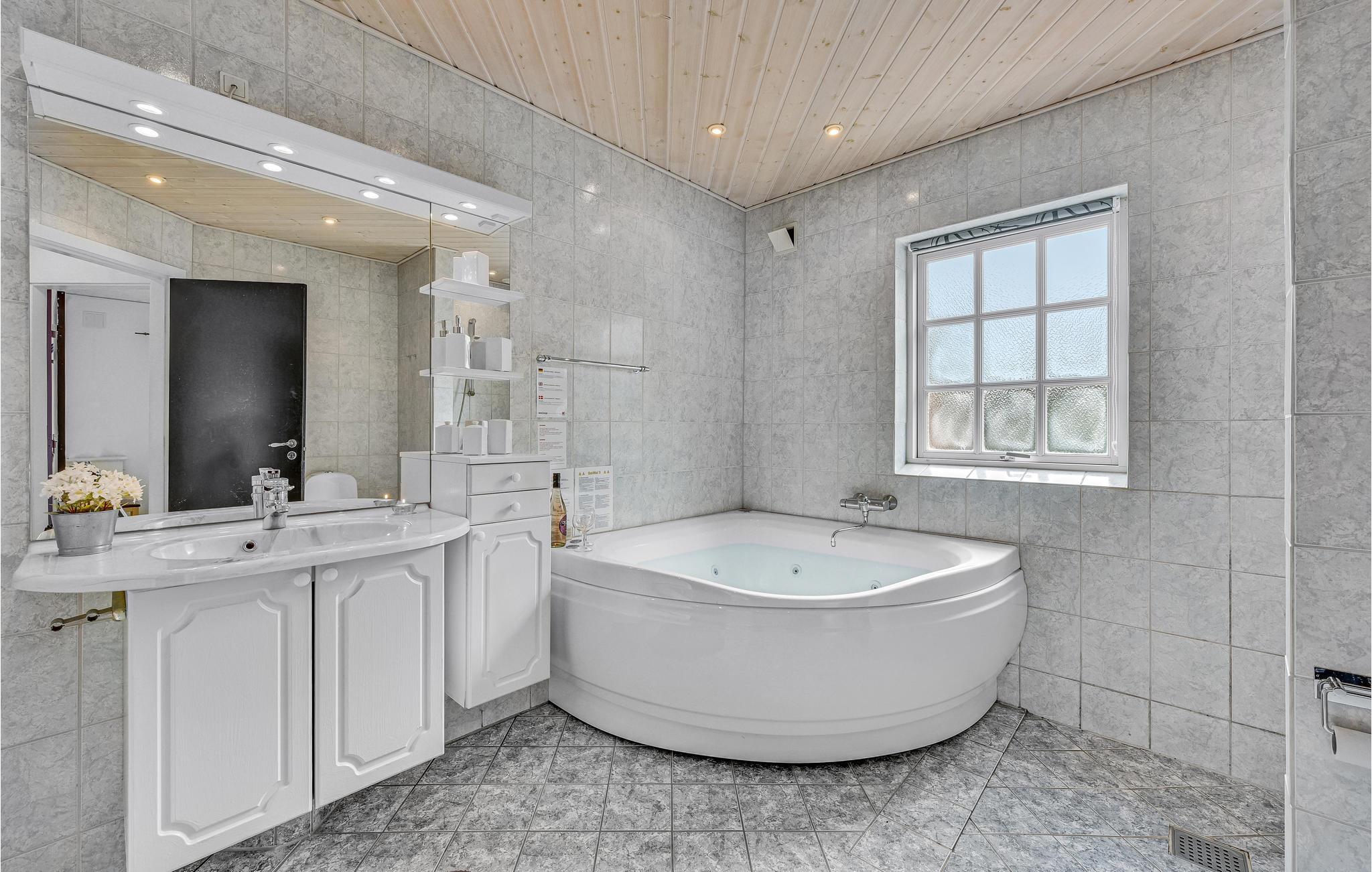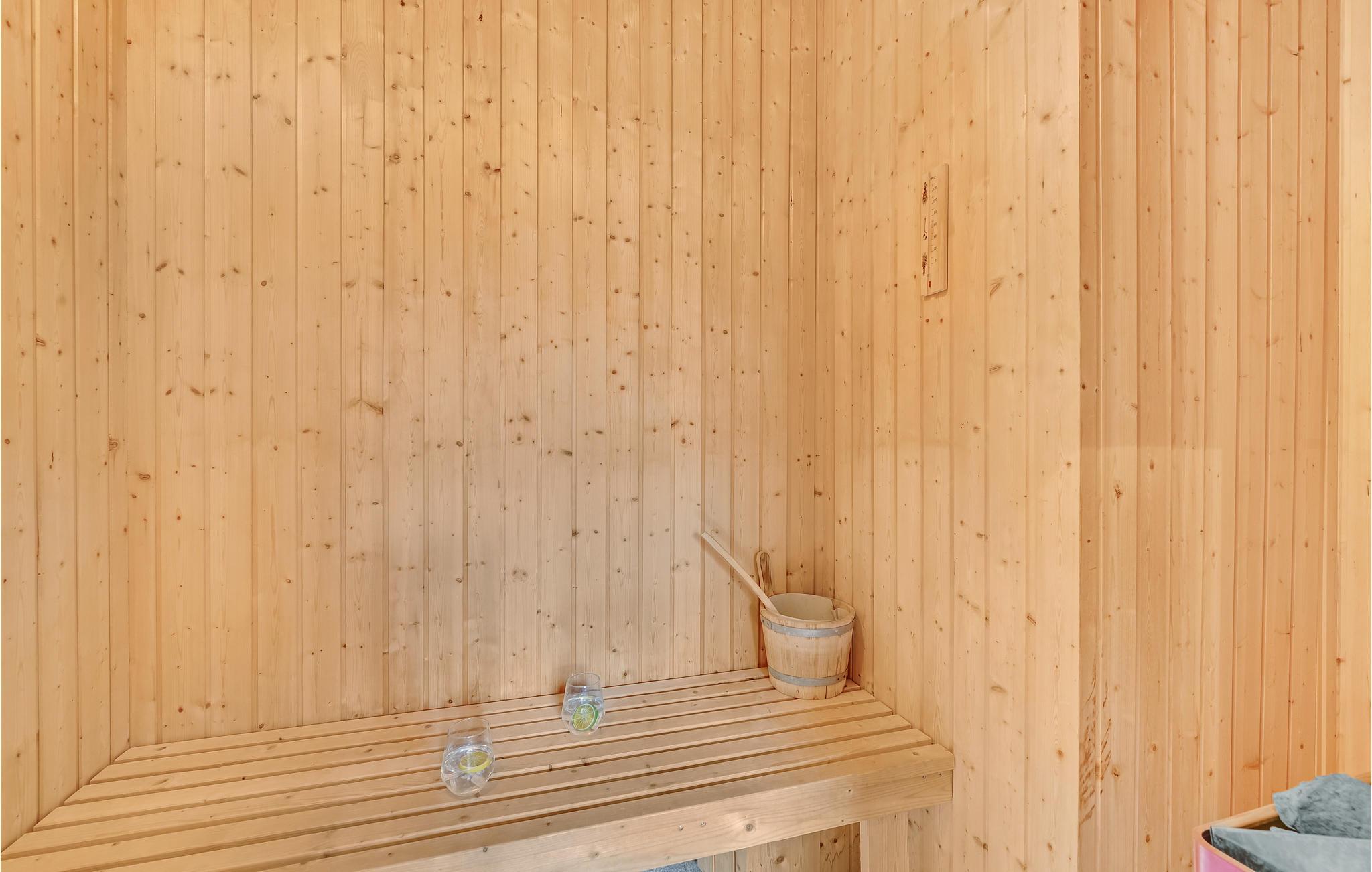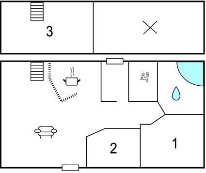 Der er to soveværelser med dobbeltsenge i stueetagen og to enkeltsenge i et kombineret stue/soveværelse på 1. sal. Der hører en bådplads til huset. Fra parkeringspladsen er der trapper op til huset.