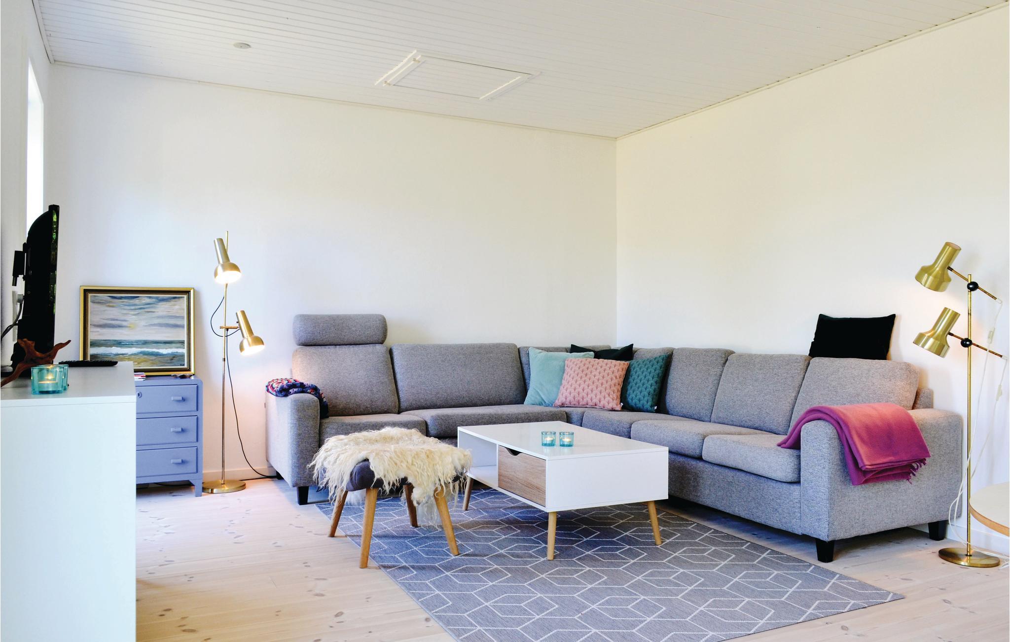 Dette hvide feriehus byder jer velkommen med en beroligende, lys atmosfære, hvor varme detaljer bryder den hvide farve på harmonisk vis. Huset danner en god base for en varieret ferie spækket med oplevelser og er det ideelle sted til en pause fra hverdagens trummerum. Ud med stress og ind med kvalitetstid og nærvær! Den åbne stue med hyggelige sprossevinduer bliver uden tvivl familiens centrale samlingspunkt. Nyd jeres feriemåltider på den åbne terrasse. Mens jeres børn leger i sandkassen, kan I tale om turen i morgen over en kop kaffe.