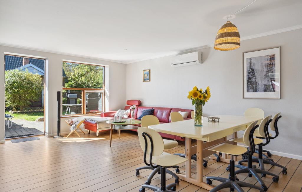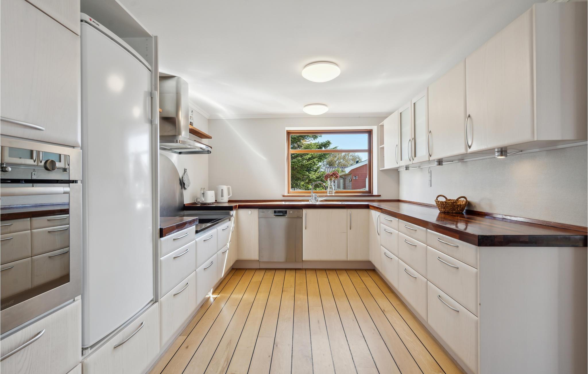 Rejs til den jyske vestkyst med familien og hold en dejlig ferie i dette lyse, veludstyrede hus. Her kan I se frem til gode, pladsfyldte rammer, dejlige faciliteter til madlavningen og hyggelige aftener rundt om spisebordet. På de kølige solskinsdage er det hyggeligt at mærke varmen i udestuen, og når sommeren kommer, kan I også samles i haven og på terrassen. Børnene kan tumle rundt på græsplænen og have det sjovt, mens I vender grøntsagerne eller pølserne på grillen og gør klar til den store udendørsmiddag. Her kan I også sætte jer med en kop kaffe og lægge et program for feriedagene.