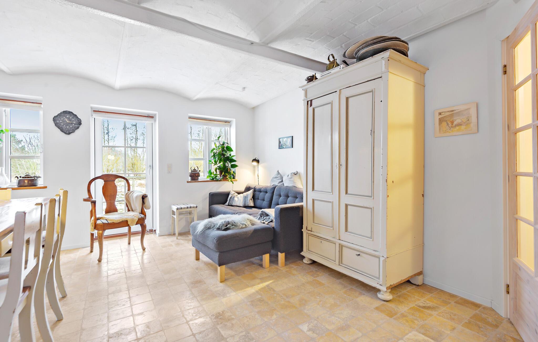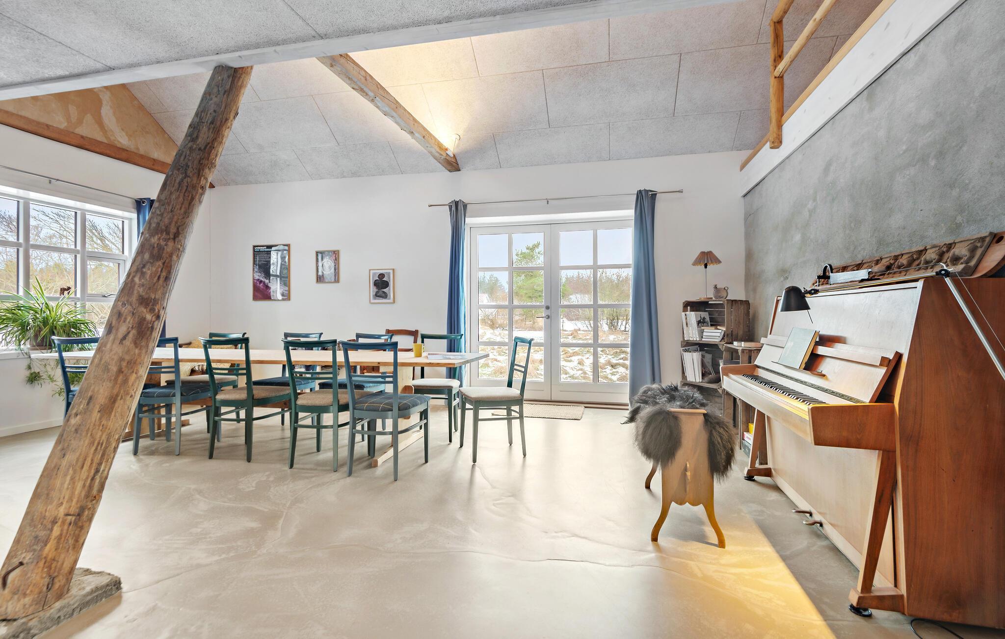 I denne indbydende bolig får I masser af plads til en ferie med en større vennegruppe eller den udvidede familie. Indretningen er fremdeles hjemlig med de tydelige træbjælker, det store spisebord og den særlige ruminddeling med den åbne første sal. Interiøret præges af de mange træelementer, der giver boligen et naturligt udtryk og giver et praj om, at I bor ude på landet. Her kan I hygge jer med fællessang ved klaveret og med fælles madlavning i det veludstyrede køkken.