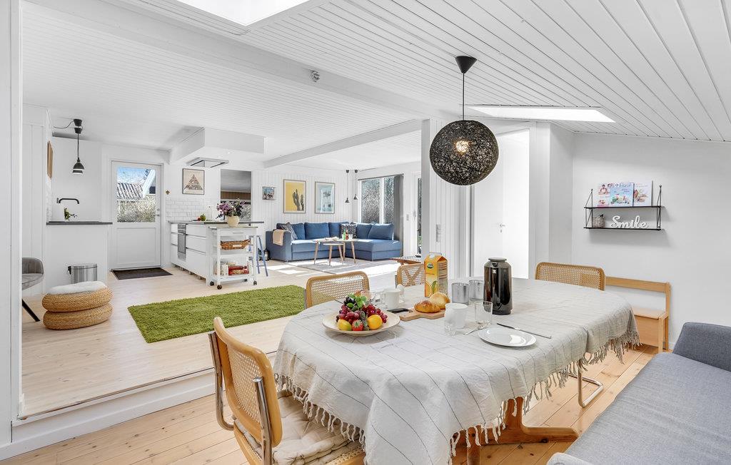 Glæd jer til et familievenligt og harmonisk design i dette hyggelige hus, som bliver en skøn base til jeres ferie. Her kan I slappe af mellem alle oplevelserne ude i området og nyde måltiderne og de gode samtaler. Udendørs venter en have med sandkasse til de mindste og en terrasse med grill til de lange, lyse sommeraftener.
