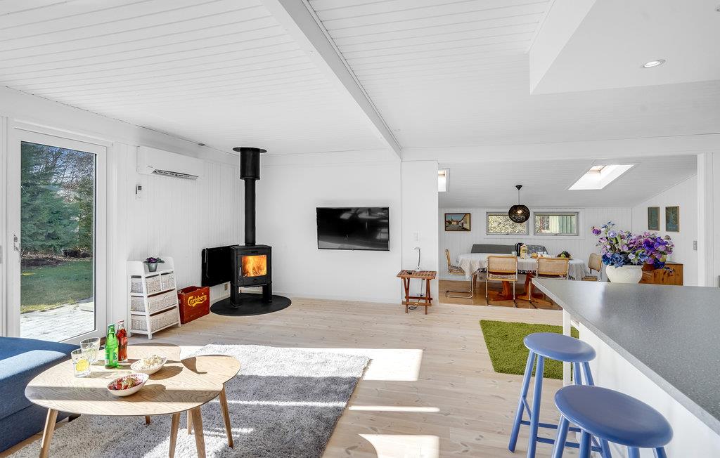 Smart og charmerende sommerhus med stort, åbent opholdsrum.