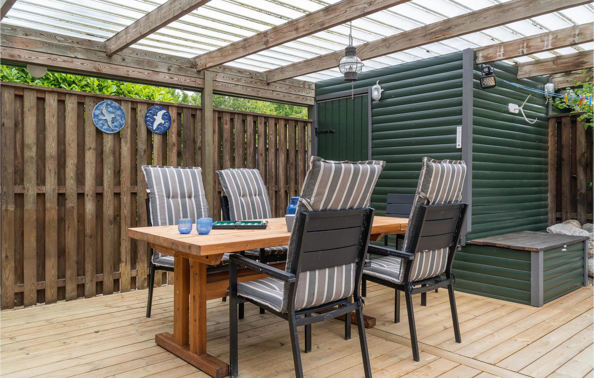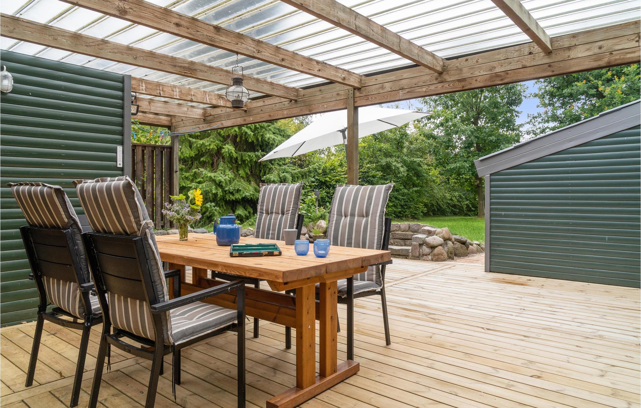 Her kan I holde ferie i et hyggeligt og velindrettet feriehus, der ligger ved Nysted på Lolland. Huset er lyst og venligt at ankomme til og er pænt møbleret. På den overdækkede terrasse, der ligger i forbindelse med den lukkede have, kan I nyde måltiderne både i sol og regn. Huset ligger i et roligt område, med et rigt dyreliv, hvor rådyrene ofte kommer på besøg i haven. Der er gåafstand til den dejlige badestrand med tilhørende badebro. Nysted Havn besejles året rundt af lystsejlere, og her er flere restauranter og caféer, der serverer lækre måltider.