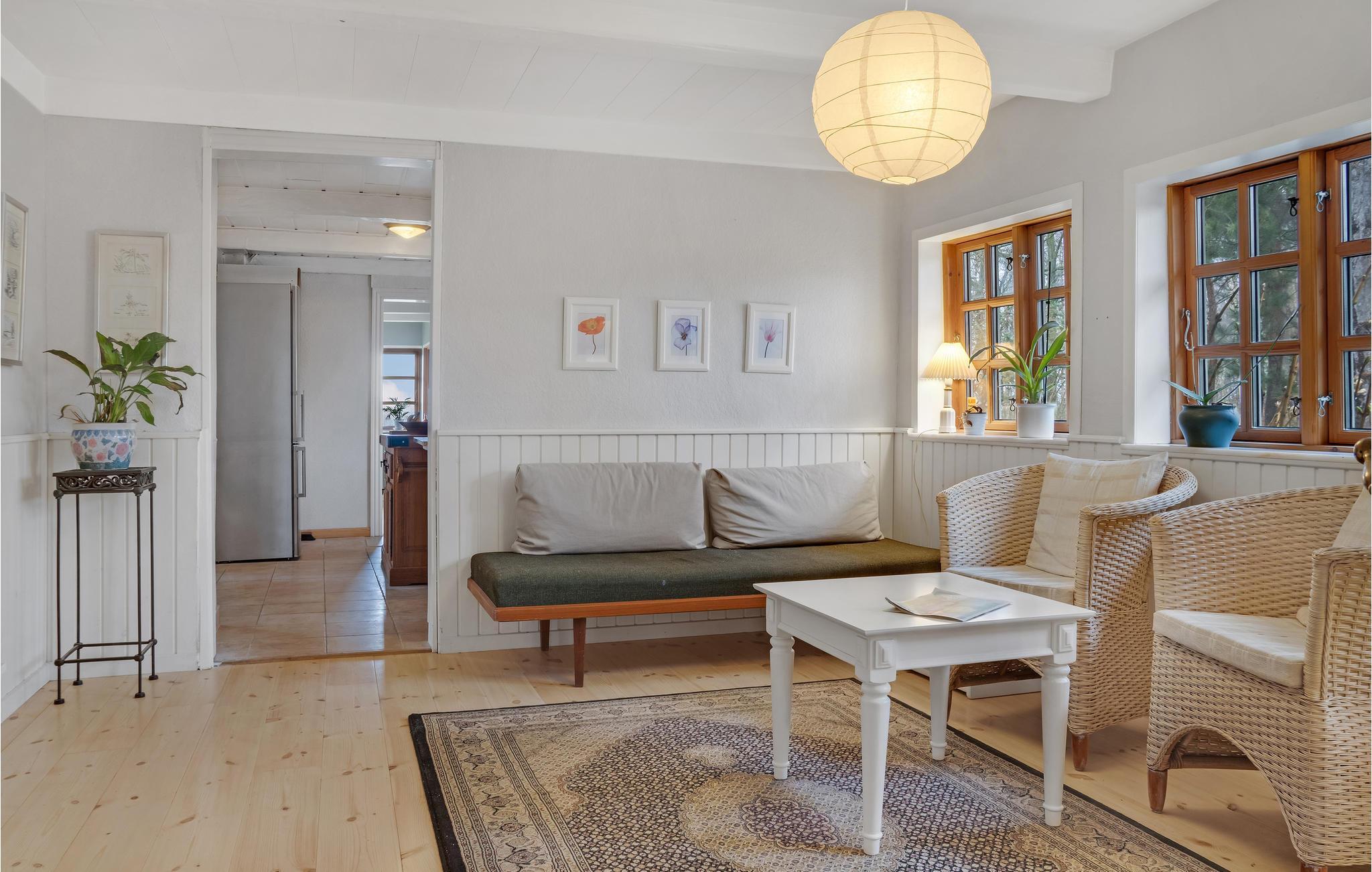 Huset byder på alt I behøver for at få en perfekt ferie - et stort køkken, hyggelige opholdsstuer, et badeværelse med bruser og badekar og to smukke soveværelser. Brændeovnen giver varme og skaber hyggestemning på kølige dage.