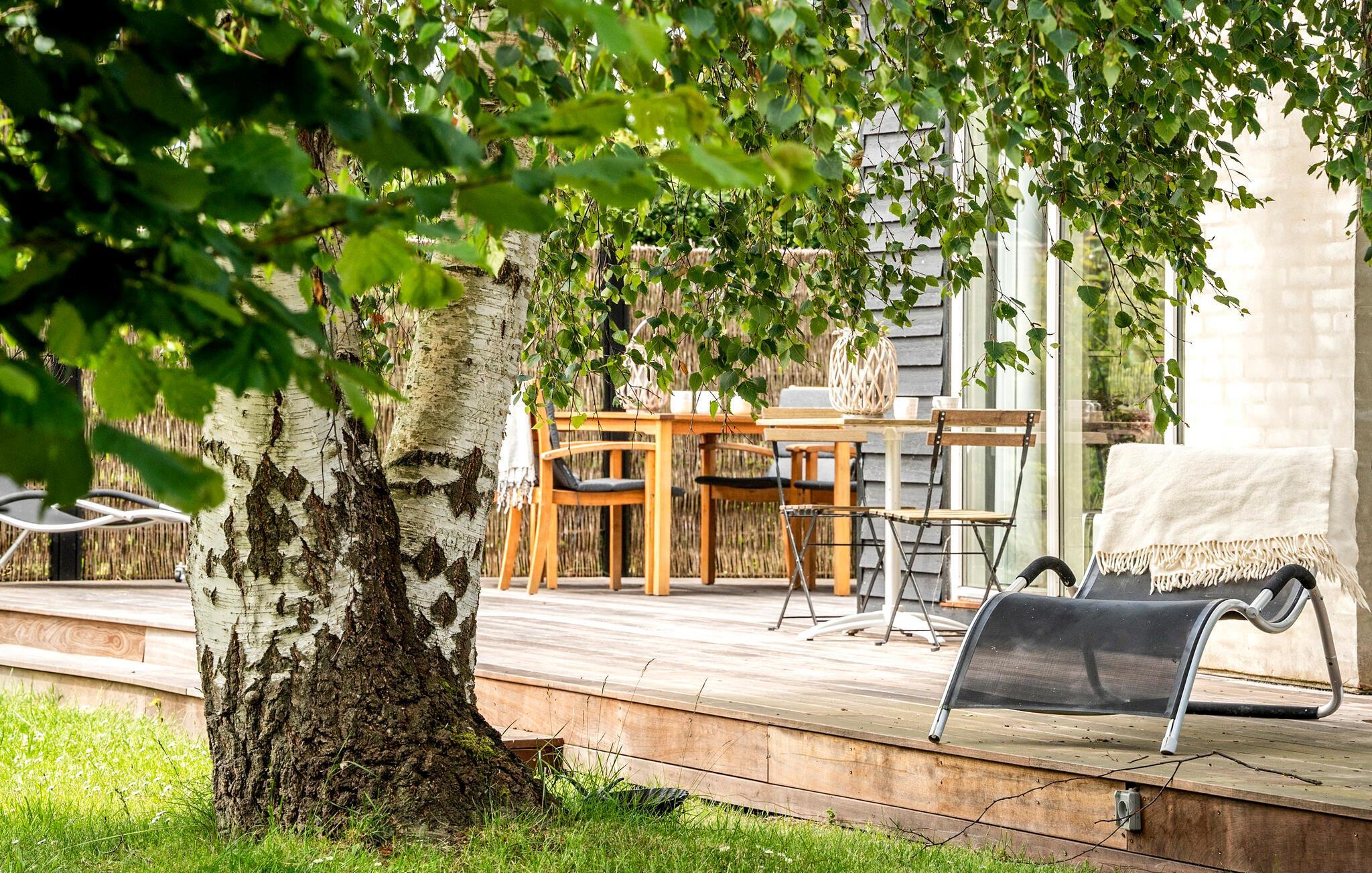 Begynd dagene på terrassen med en kop kaffe og udsigt til den omkringliggende natur. Brug det solrige udendørsområde til fælles måltider, solbadning eller blot til at slappe af. Her får I ideelle forhold for ubekymrede ferier.