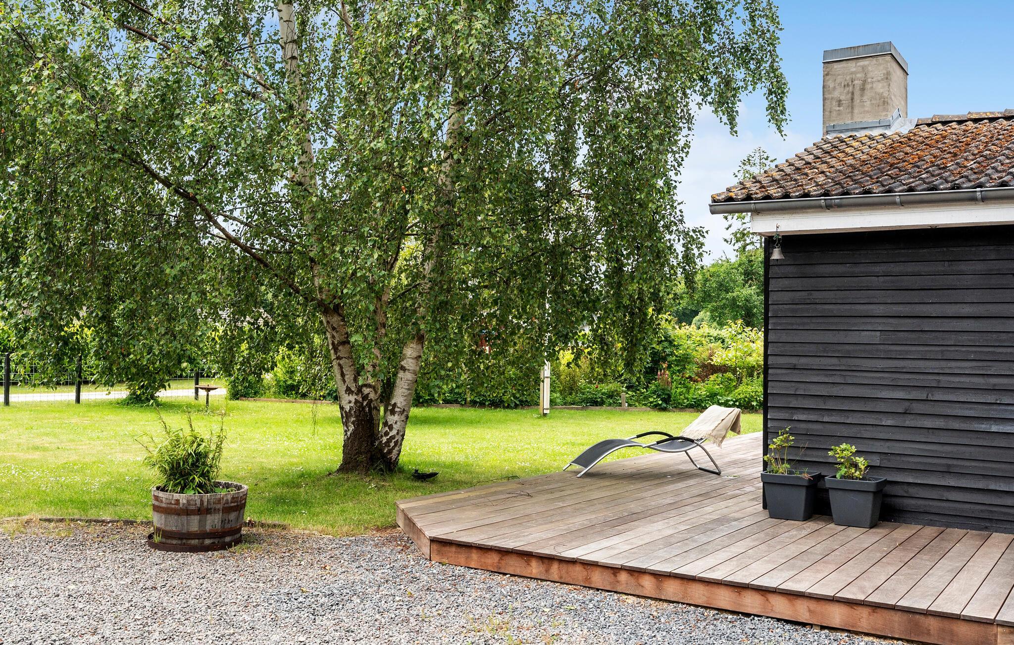 Hyggeligt feriehus i Nysted med brændeovn, stor have og kort afstand til stranden.
