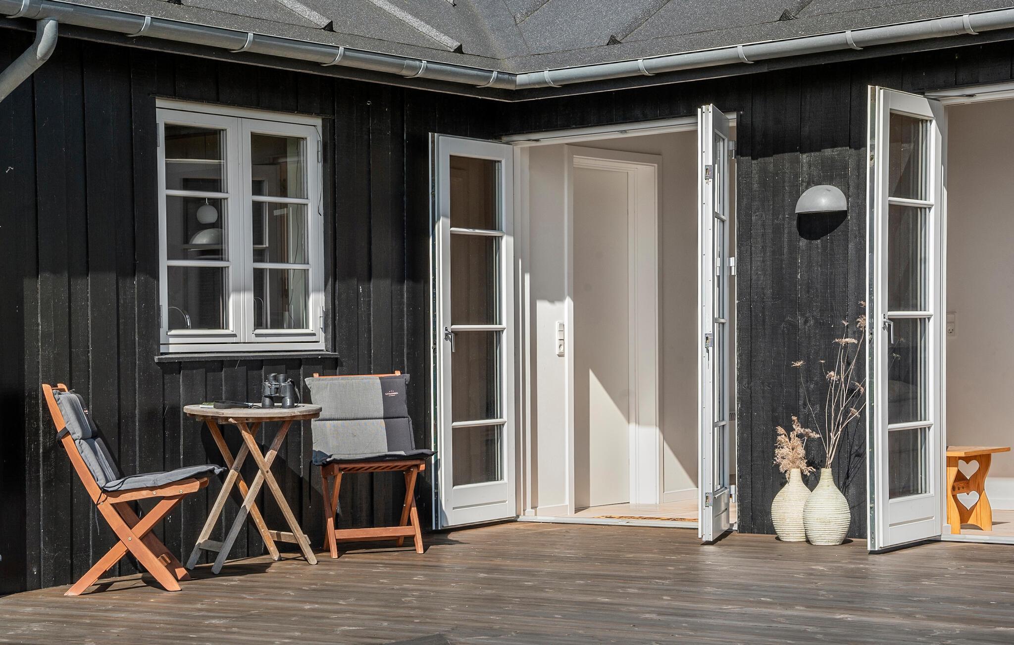 Nyd dette lyse feriehus med sauna, spabad og terrasse med udsigt tæt på stranden i Nysted.