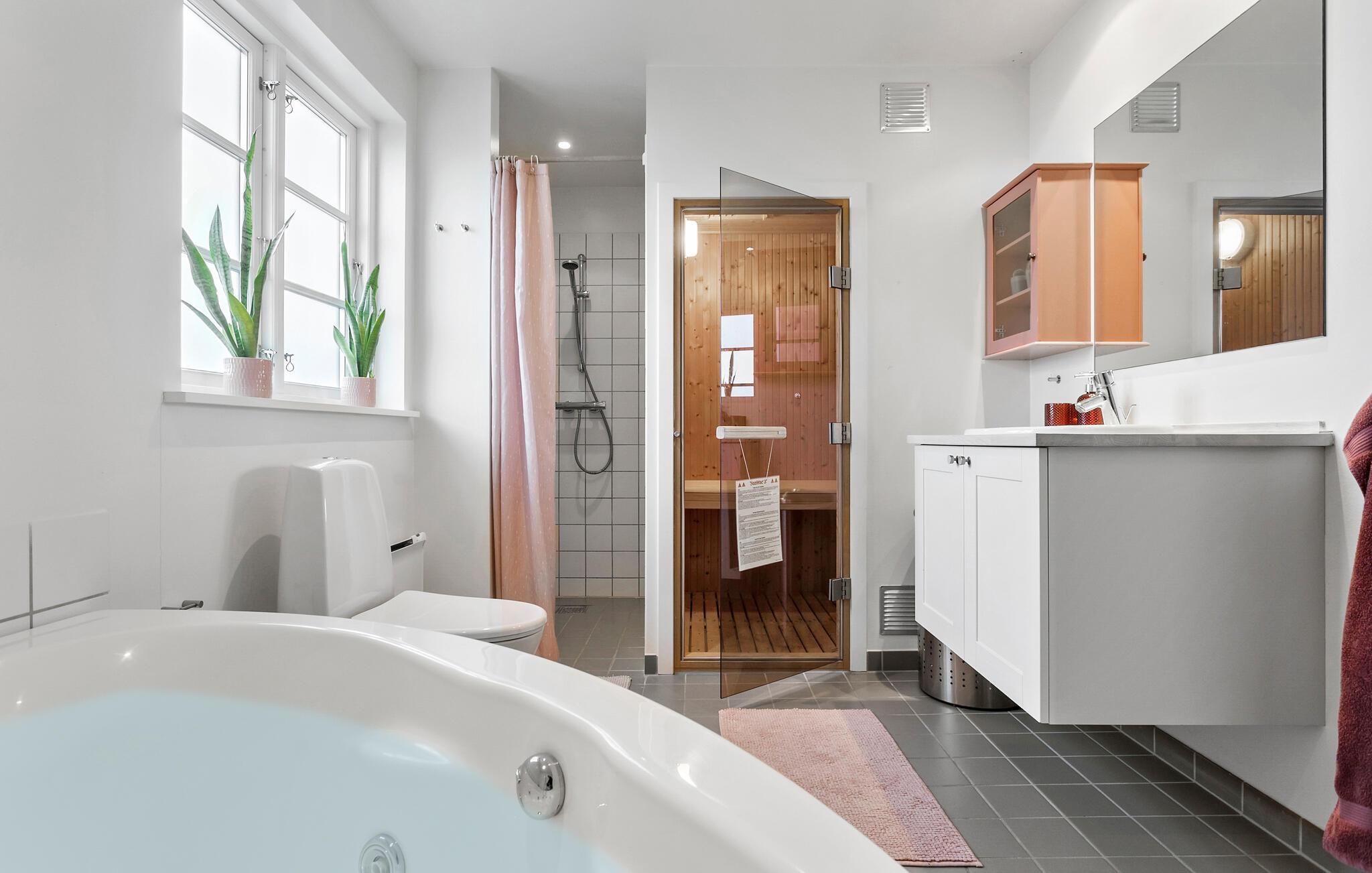 De mange vinduer bader de stilfulde værelser i dagslys og skaber en varm og indbydende atmosfære for jer. Her finder I alt, hvad I skal bruge til et afslappende ophold - lige fra det veludstyrede køkken til det hyggelige sofahjørne. Et særligt højdepunkt er saunaen, som lover jer afslappende timer efter en aktiv dag. På den store terrasse kan I nyde hyggelige grillaftener, mens børnene leger i den rummelige have.