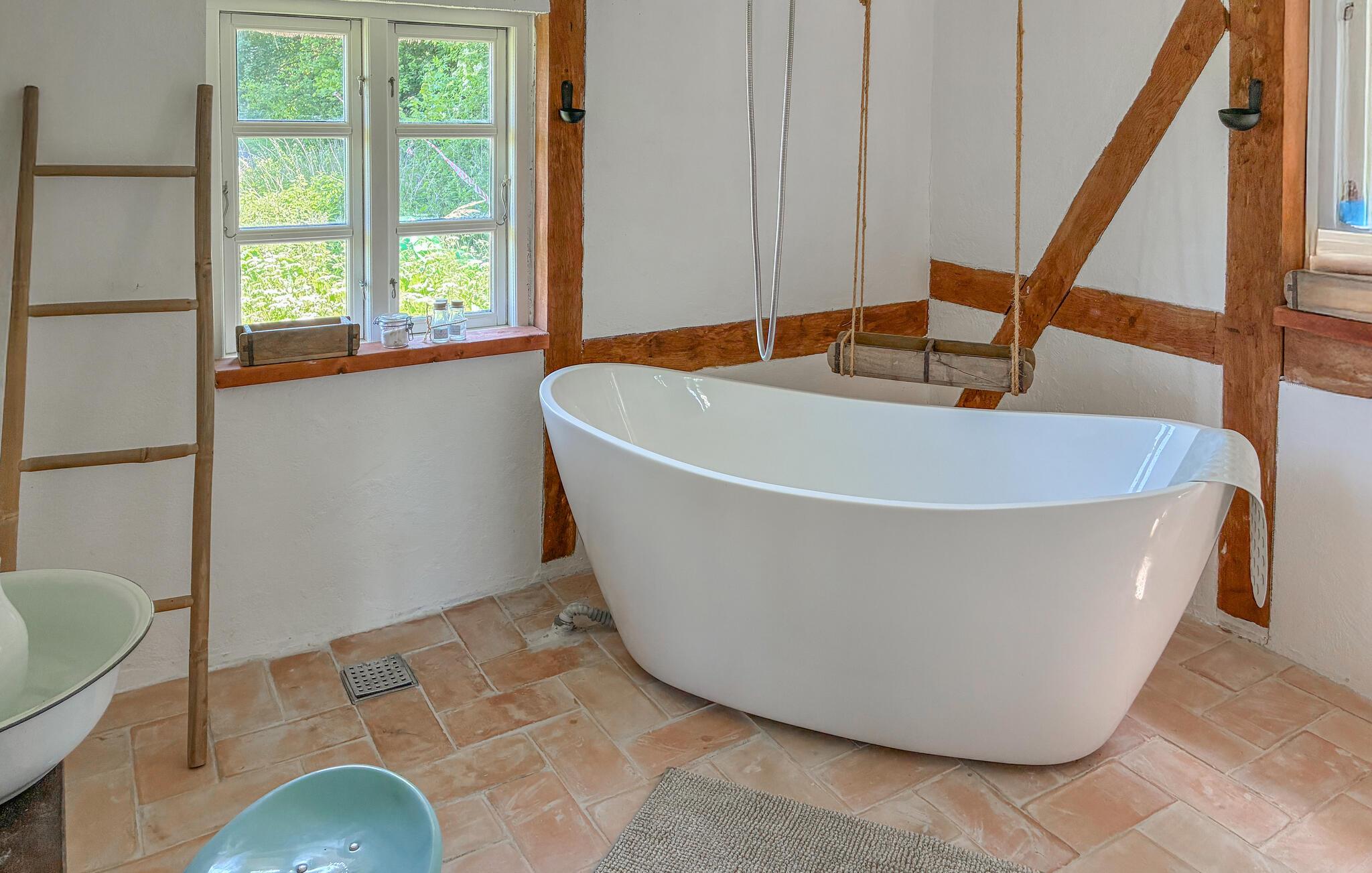 Udnyt den overdækkede gårdhave og nyd måltiderne på terrassen eller sæt jer med eftermiddagskaffen her. Den store have er omgivet af træer og har en vidunderlig rolig atmosfære.
