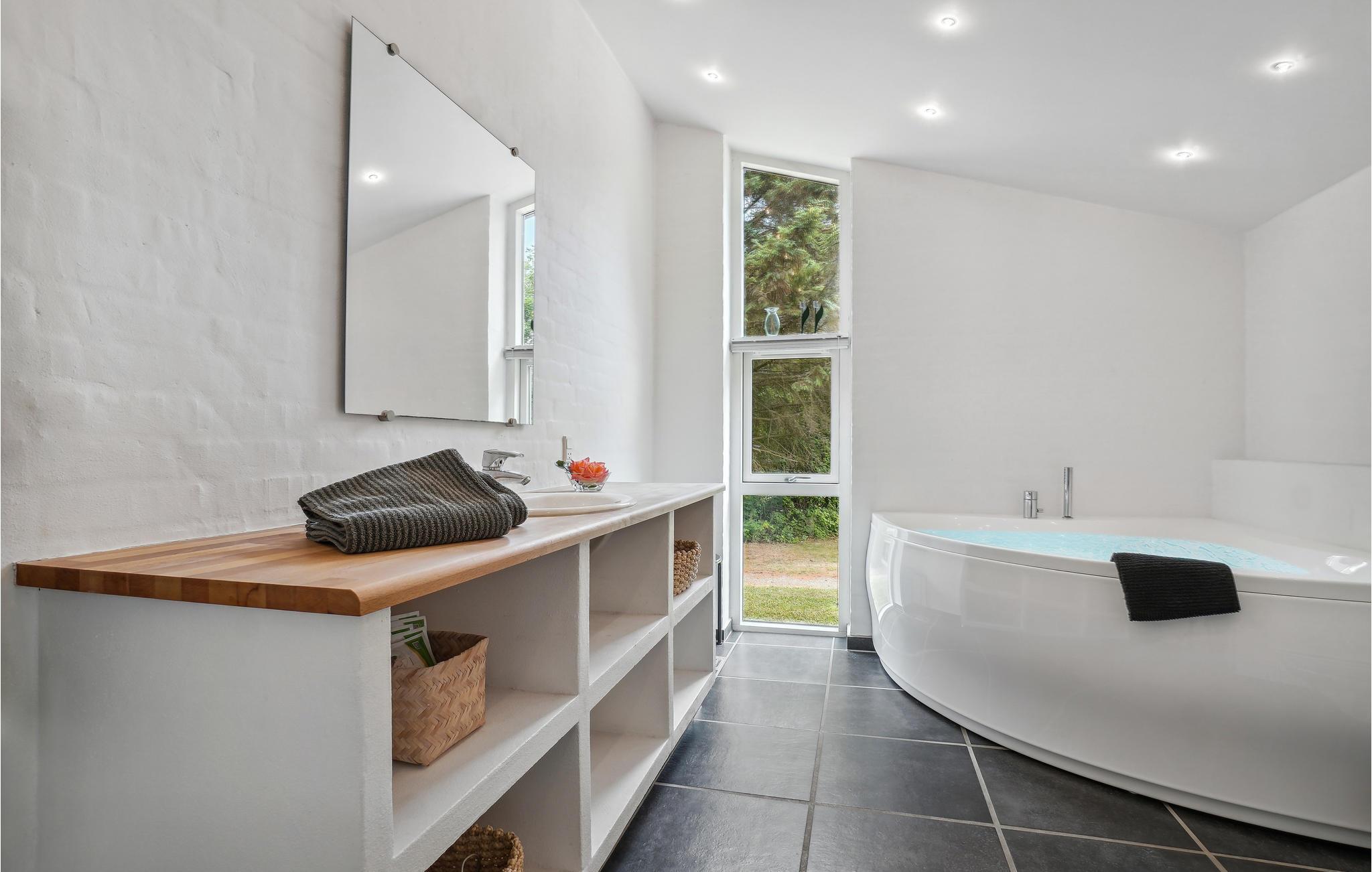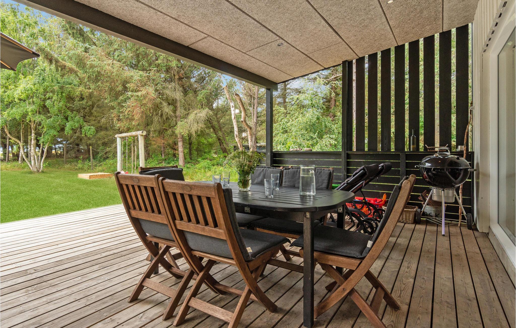 Dette dejlige feriehus af træ ligger på en lukket klitgrund med en meget flot udsigt over fjorden, der er ret tæt på. I huset er der en stor stue med moderne møbler og lyst interiør. Stuen fortsætter over i den flotte spiseafdeling i forbindelse med det nye elegante og veludstyrede køkken. Desuden et lækkert og indbydende badeværelse med spabad, hvor I kan nyde et afslappende og masserende bad. I de hyggelige værelser er der gode senge og rart at være. Området er meget roligt, ligesom der er rig mulighed for at udforske naturen på cykel eller til fods.