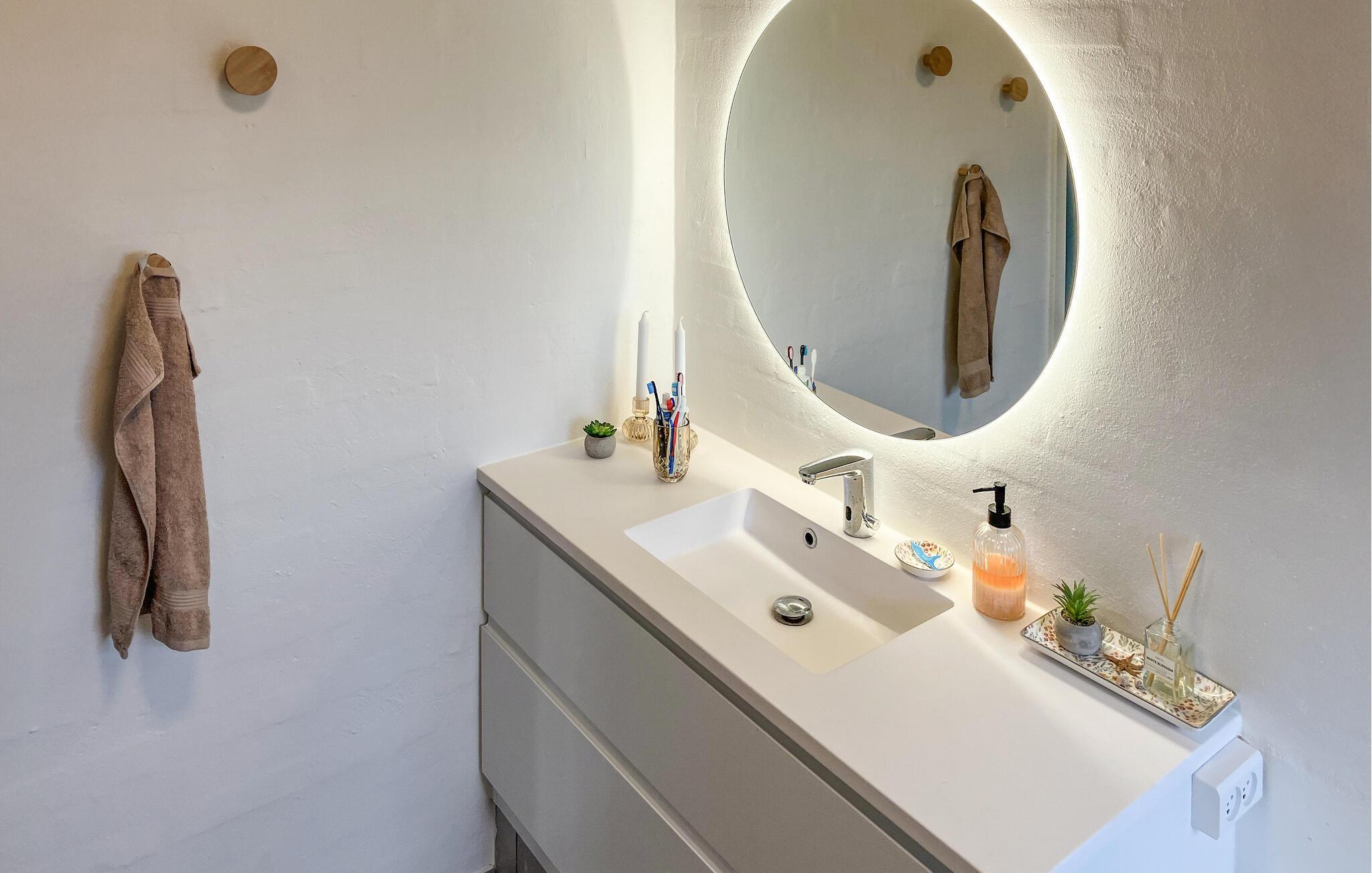 I dette harmoniske fristed ved havet forenes hygge og enkel elegance. Gennem de store vinduer strækker udsigten sig over enge og klitter helt ud til det glitrende vand – et syn, der fortryller på alle tidspunkter af dagen. I den åbne opholdsstue skaber blide farver, naturlige materialer og pejsens varme glød en afslappende atmosfære. Uanset om I spiser morgenmad ved vinduet, læser på sofaen eller nyder en snak foran ilden om aftenen, føles hvert øjeblik helt rigtigt her.