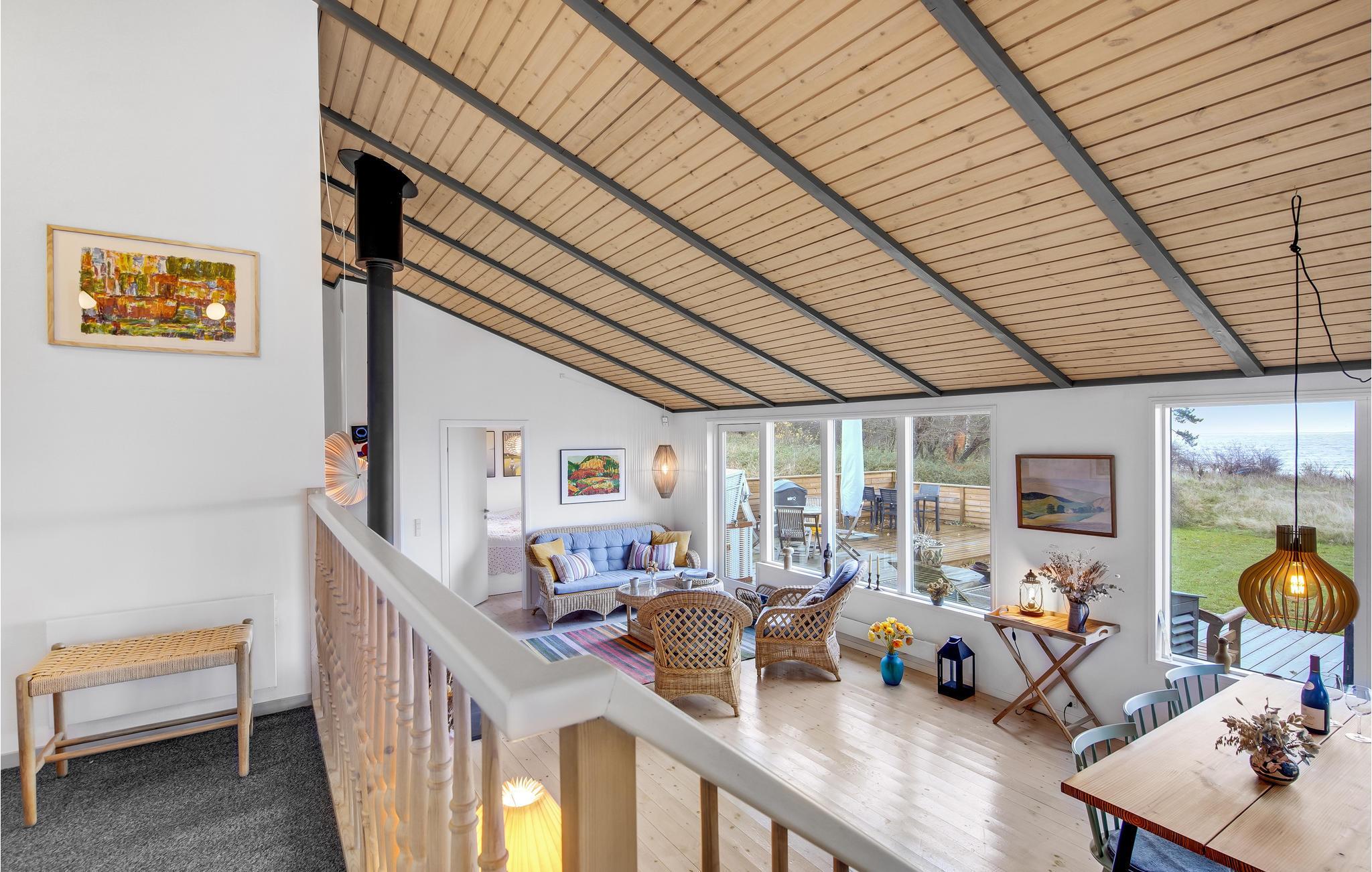 Dette lyse og smagfuldt indrettede træhus i skønne omgivelser nær hav og strand indbyder til en herlig ferie uanset årstid. Tilbered lækre feriemåltider i husets rummelige og veludstyrede køkken og nyd dem derefter på terrassen med havudsigt. Her kan I sole jer og læse en god bog gennem dagen, og senere kan I tænde op i grillen og afslutte en skøn feriedag med en hyggelig grillaften.