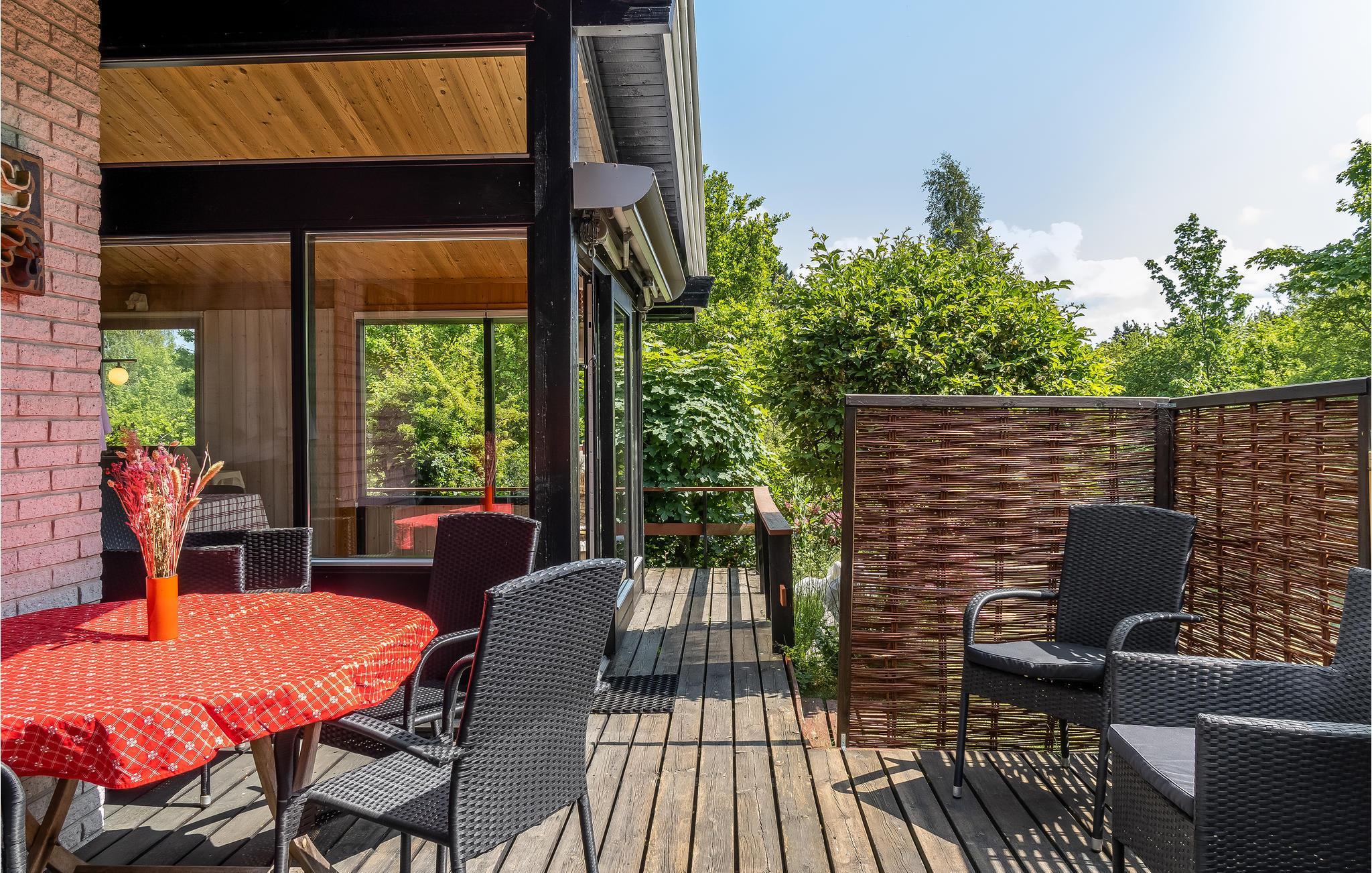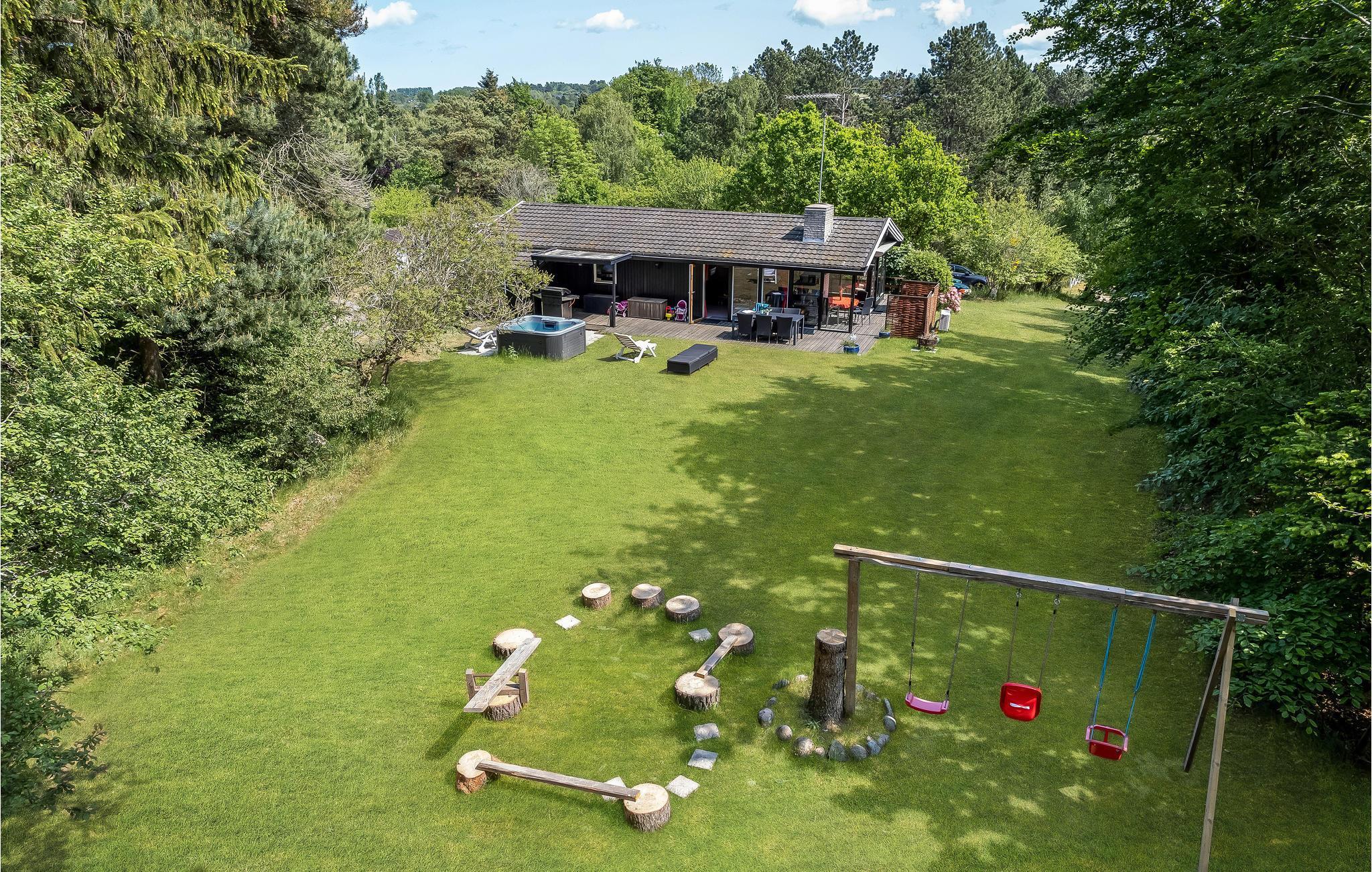 Glæd jer til jeres ferie i dette feriehus med en charmerende feel-good atmosfære. Føl jer godt tilpas i sofaen, fyr op i brændeovnen og slap af, mens I spiller spil, ser en film eller laver mad sammen. I kan også bruge masser af tid på den store træterrasse, hvor I kan vende næsten alle retninger og dermed nyde mange timers sol. Et vildmarksbad bidrager endnu mere til jeres afslapning. Nyd naturen omkring jer, mens jeres børn boltrer sig i haven.