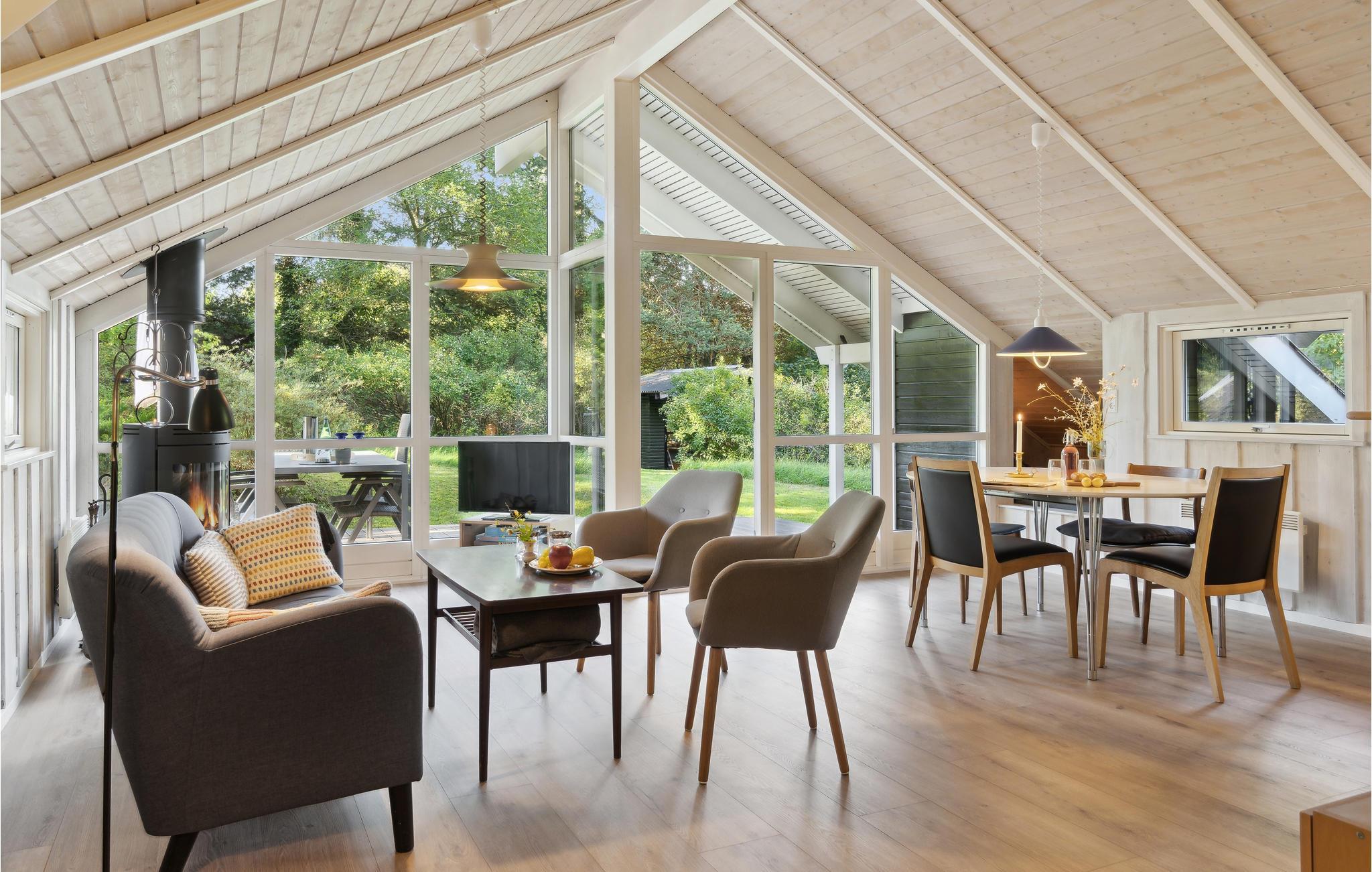 Glæd jer til nogle feriedage, hvor stranden kun er en lille gåtur væk. Dette sommerhus i Ordrup er lyst og klassisk indrettet og har gode rammer til fælles aktiviteter, så her er det nemt at slappe af og have det rart. Dæk op til dagens måltider med udsigt til den grønne have og læn jer senere godt tilbage i sofaen med ild i brændeovnen, når I vender hjem fra dagens eventyr. Oven på en lang frisk tur ved vandet er det også skønt at komme hjem og få varmen i spabadet.