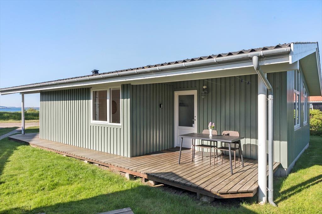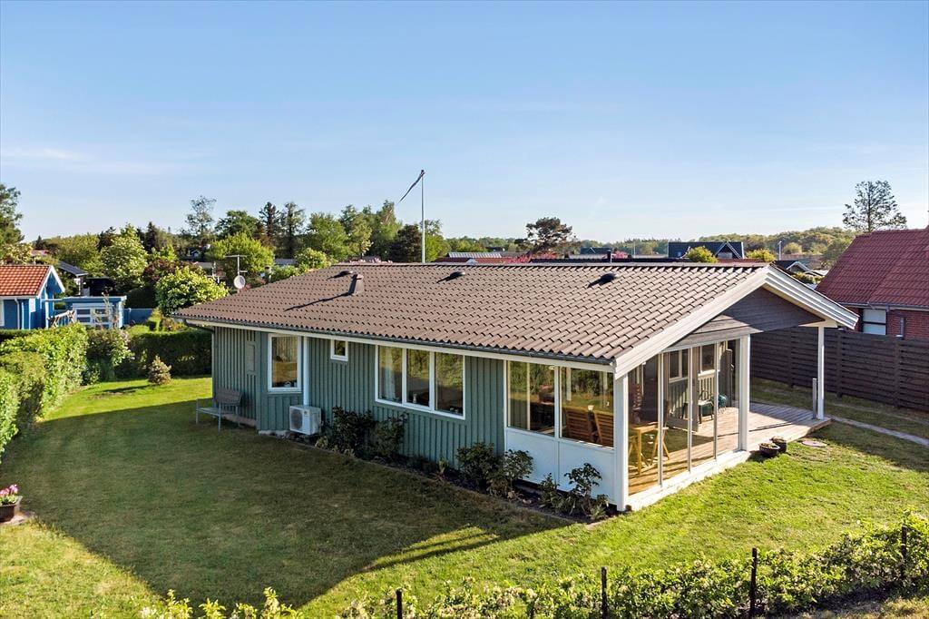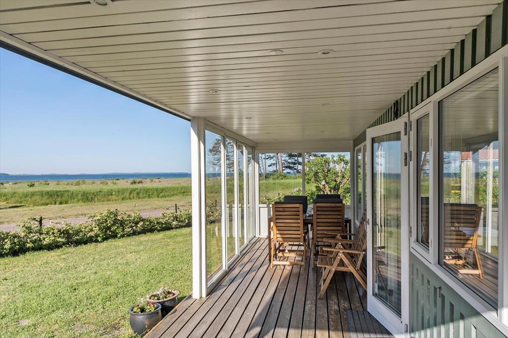 Huset ligger KUN 100 meter fra Ore Strand, hvor der er et stort grønt areal og badebro. Stor overdækket og delvis lukket terrasse med havemøbler.