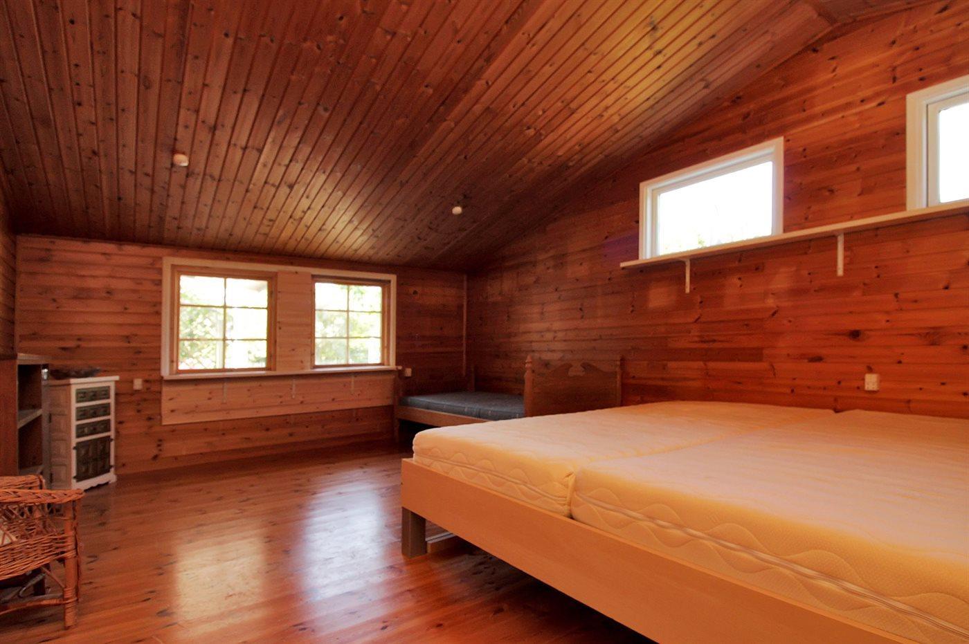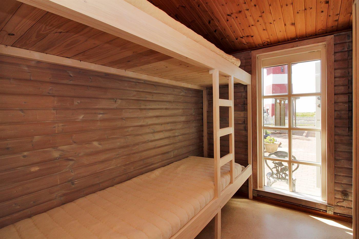 Der er i alt 2 soveværelser. Sovepladserne fordeler sig på: 2 sovepladser i enkeltsenge. 2 sovepladser i køjeseng.2 sovepladser i elevationssenge.
