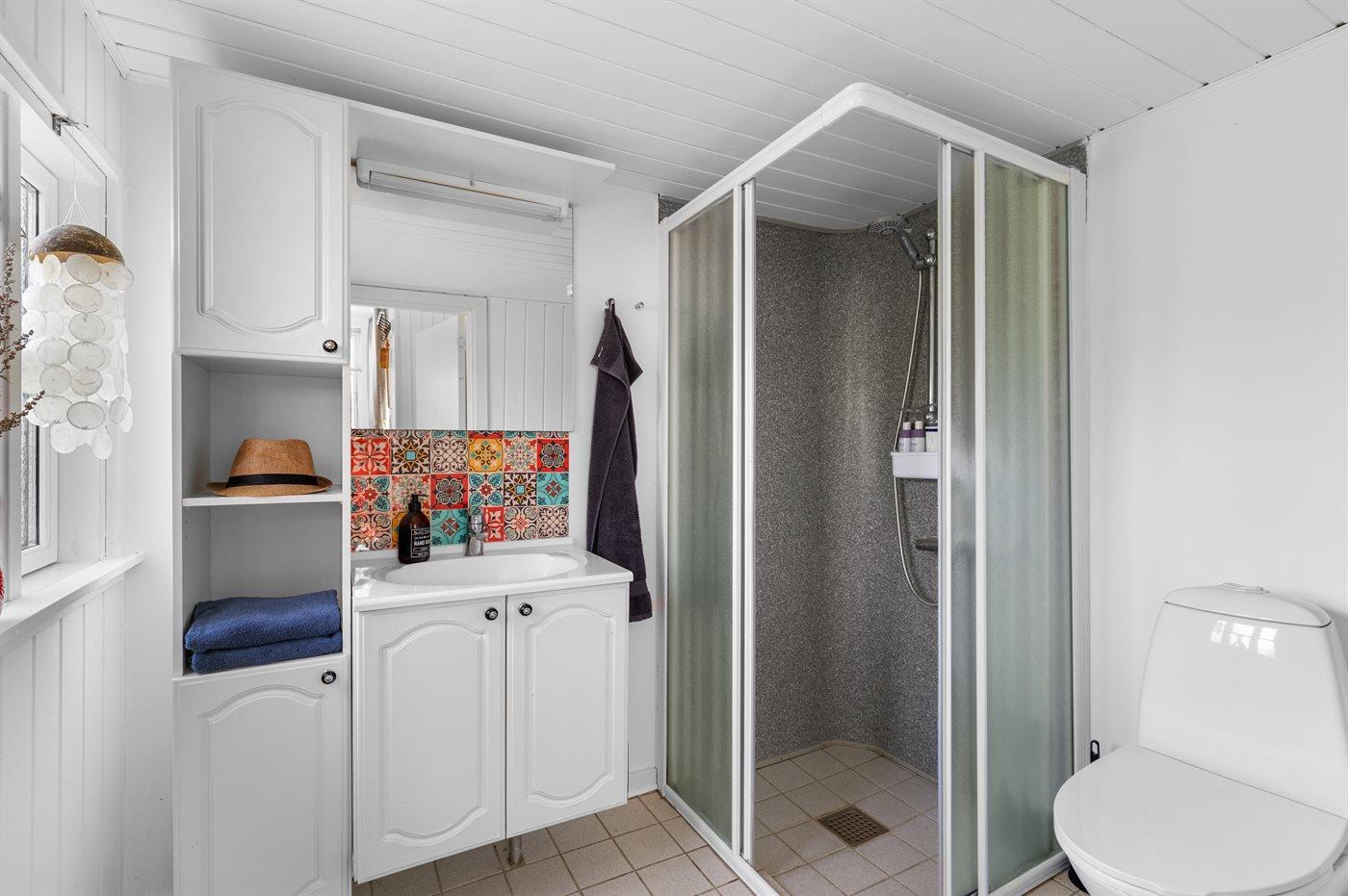 Der er 1 badeværelse med bruseniche og 1 toilet.