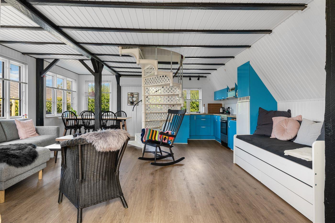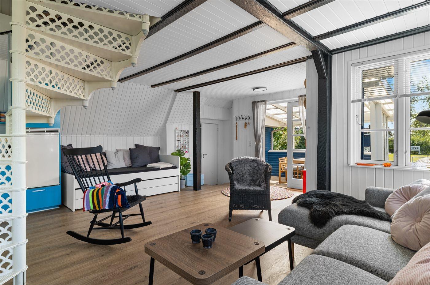Yderst hyggeligt sommerhus i to plan tæt på stranden.