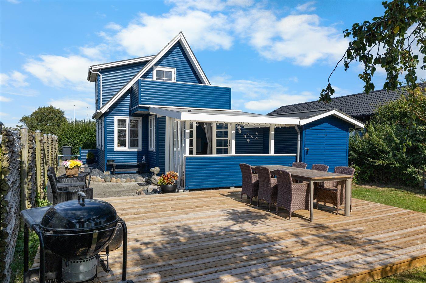 Hyggeligt sommerhus i to plan, tæt på stranden med nyrenoveret interiør og stor have.