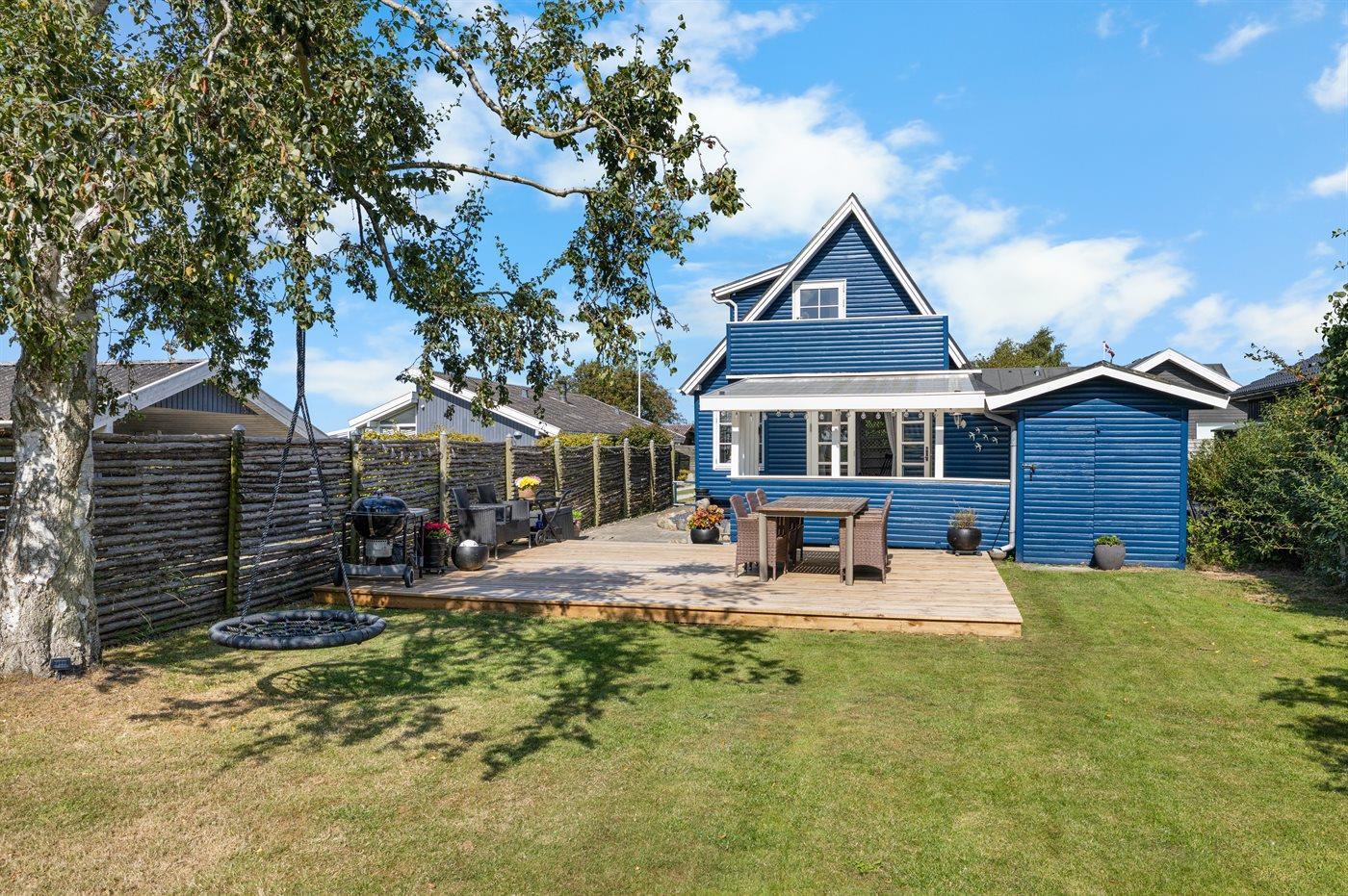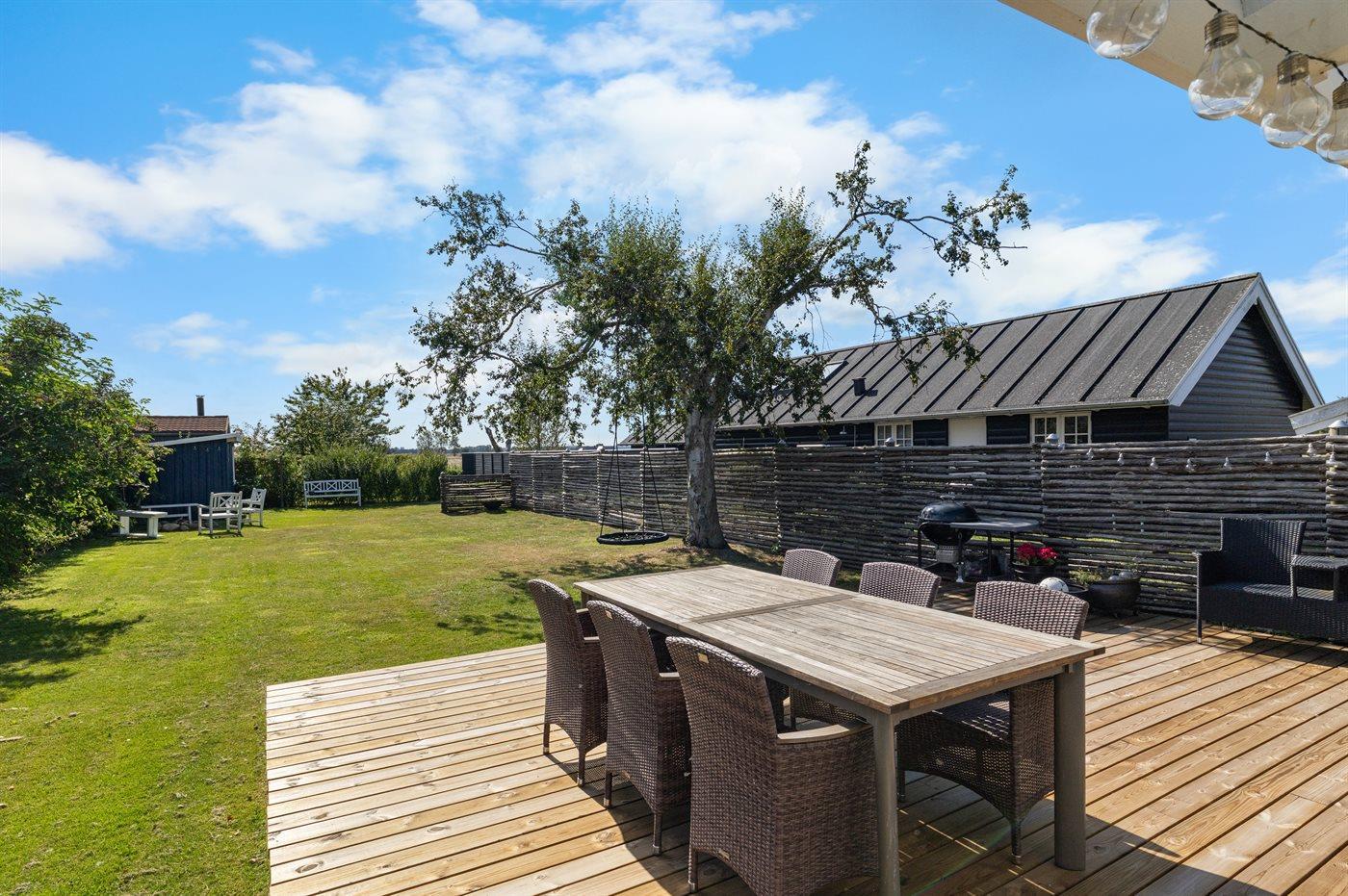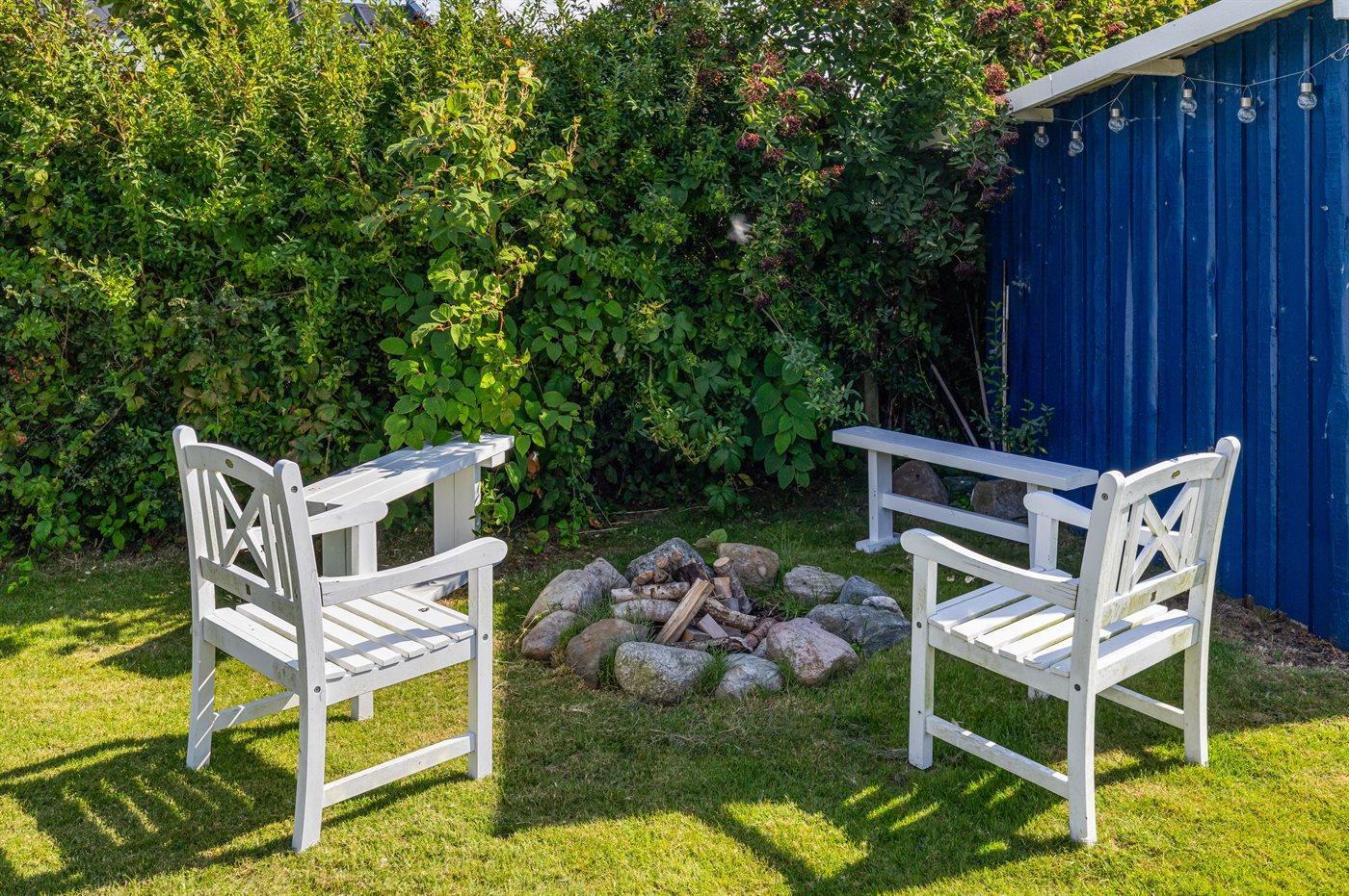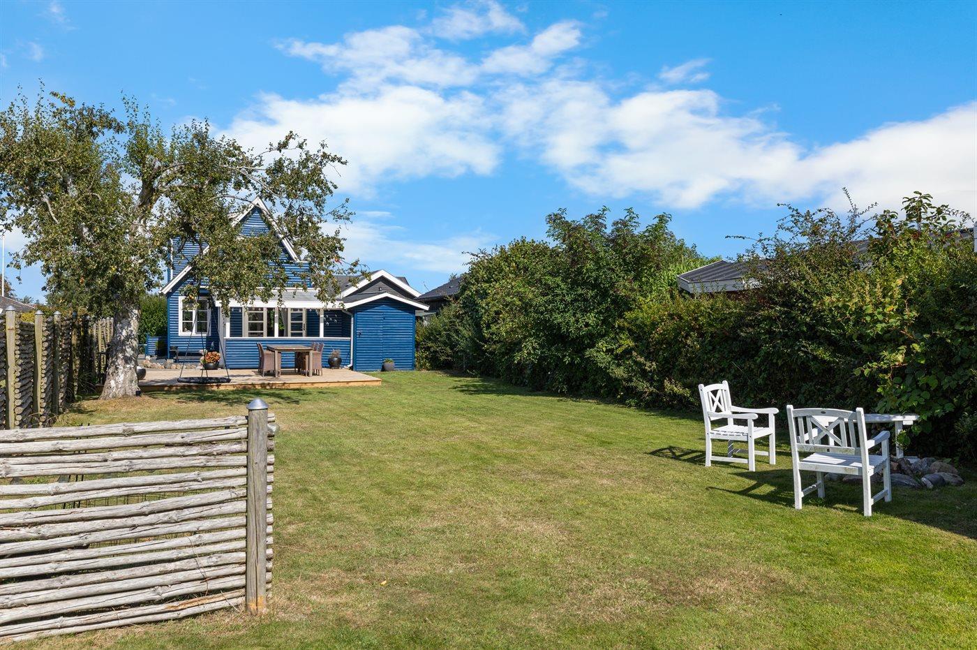 I haven er der god plads til udendørs aktiviteter, og der er kun ganske kort til stranden ad den rolige vej.