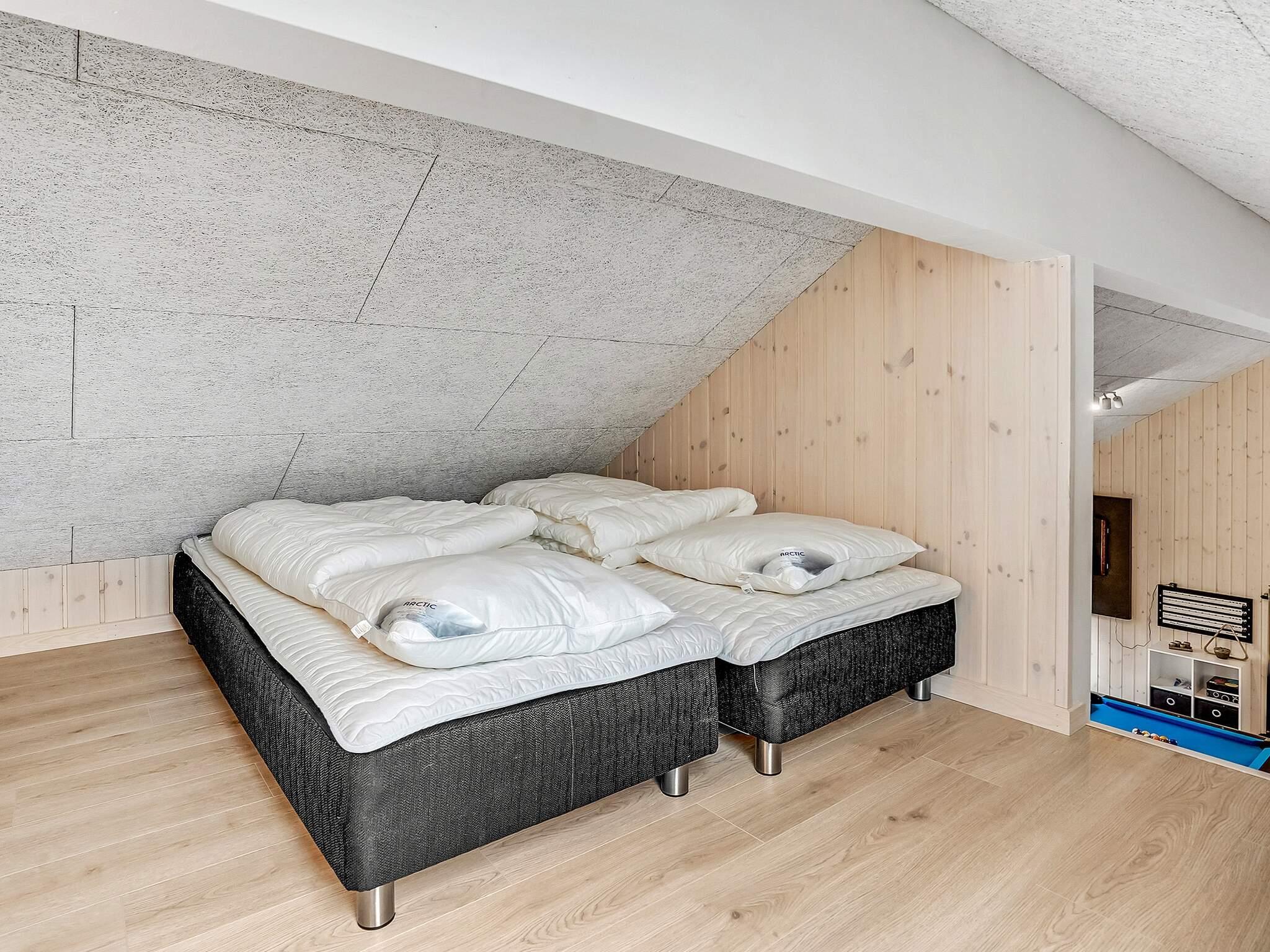 Der er seks soveværelser med dobbeltsenge og enkeltsenge. De seks værelser er opdelt i to soveområder med hver sit badeværelse. Der er også et ekstra badeværelse i poolområdet, hvor du også finder en sauna. De resterende fire senge er placeret på hemsen i sommerhuset, hvor især yngre gæster vil finde det hyggeligt at overnatte.