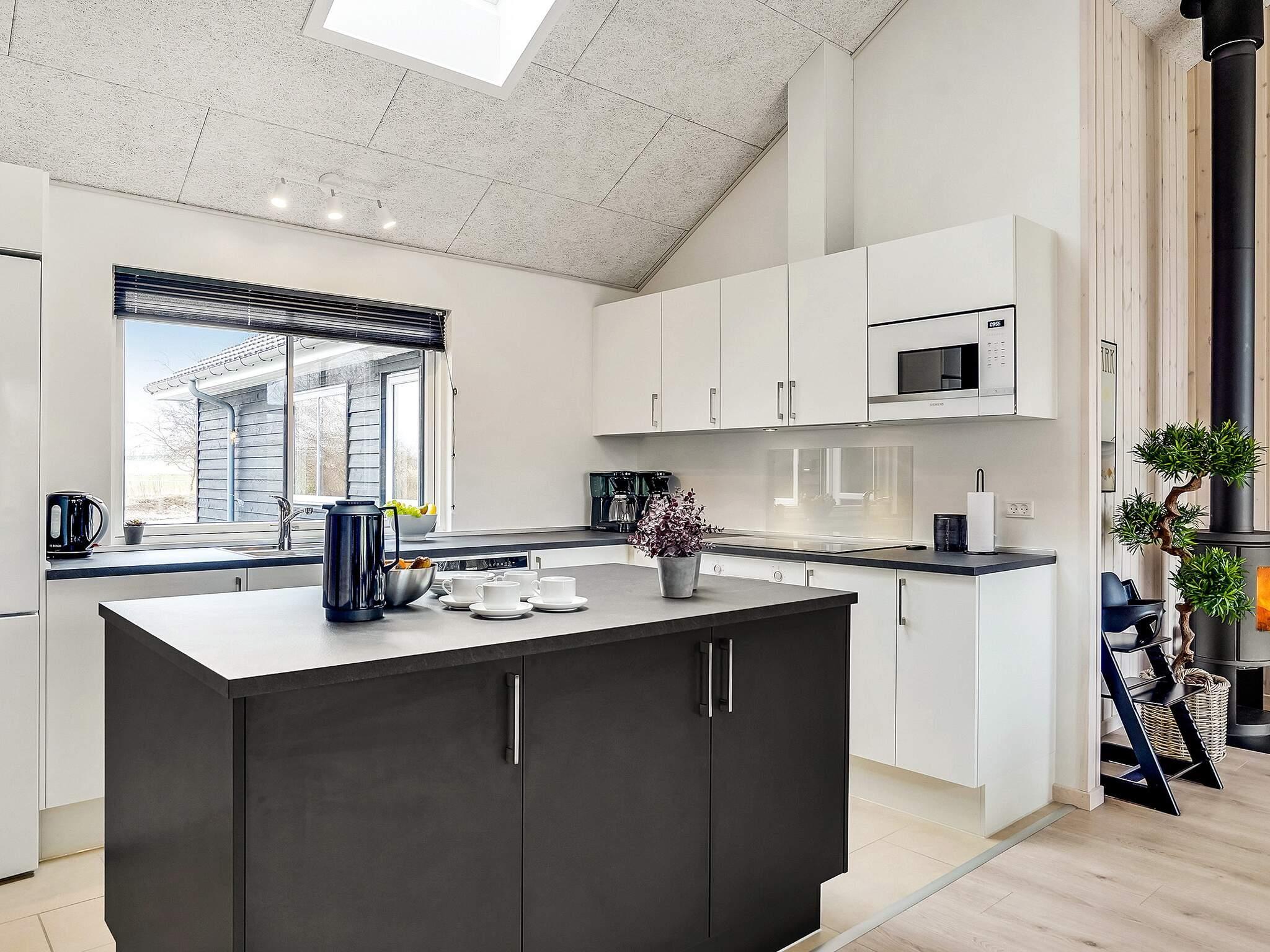 Når man holder ferie sammen, er det vigtigt at have god plads til at samles om et bord og nyde et lækkert måltid. Det er der naturligvis plads til i centrum af luksushuset, det store og lyse køkken/alrum hvor du både finder et langt spisebord og et hyggeligt sofahjørne foran tv'et. Dette værelse har også en brændeovn, som kan give varme og hygge på kølige dage.