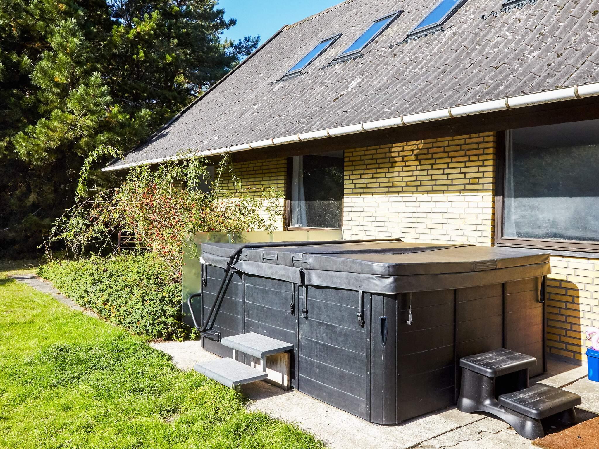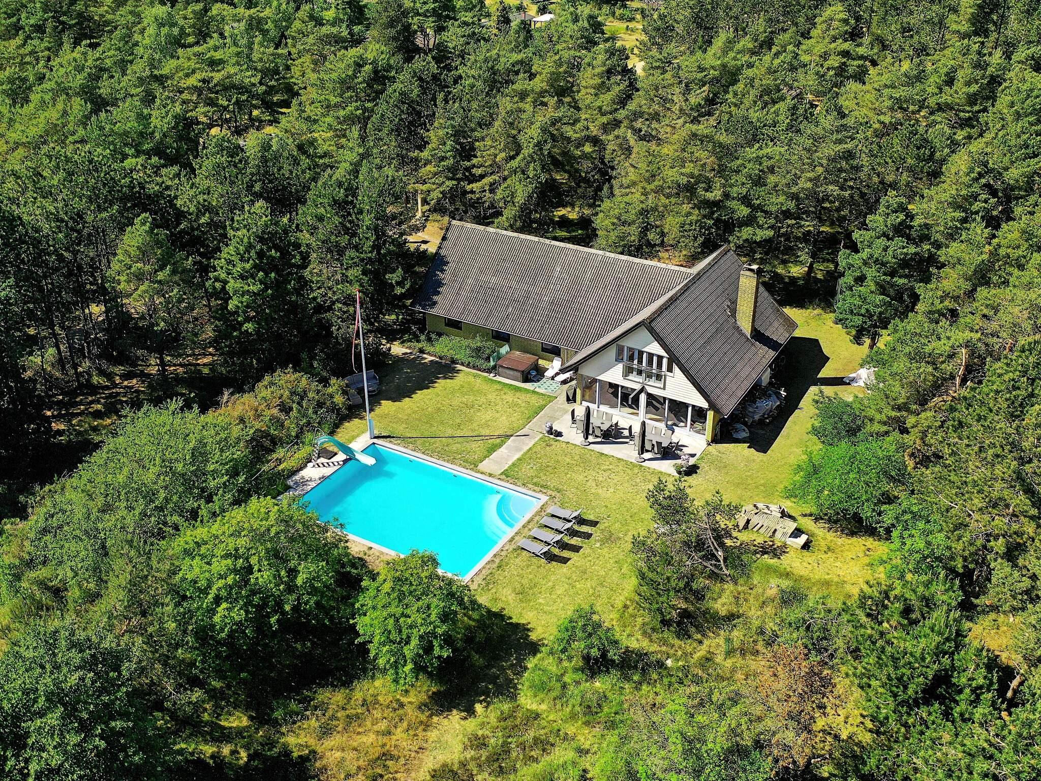 På stor, naturskøn grund ved Overby Lyng ligger dette familievenlige sommerhus med udendørs swimmingpool og udendørs spabad og et fint kig til havet. Den store swimmingpool med havvand, der opvarmes af solen, er et oplagt samlingspunkt for familien (kan benyttes fra maj til og med september). Ved terrassen er der placeret et 7-personers spabad, som med glæde kan anvendes hele året. Stuen er med store vinduespartier, hvorfra der er udsigt til poolen og til bålstedet i haven. Begge badeværelser er fra 2019 og er begge placeret i den ene ende af huset, sammen med alle 6 værelser. Der er direkte adgang til bryggers fra terrassen med spabadet. Bemærk: ingen adgang til 1. sal. Der er trampolin (benyttes på eget ansvar/forsikring). Brug af pool, vandrutschebane samt spa foregår på eget ansvar/forsikring. Brug af svævebane og bålplads på eget ansvar/forsikring. Der skal afregnes olie i huset – 11 kr. pr enhed.