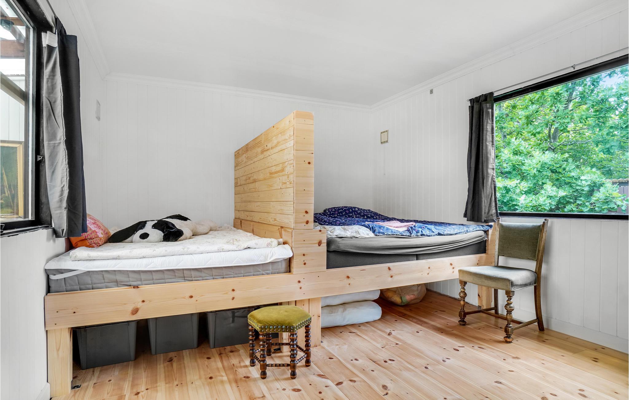 Glæd jer til nogle herlige feriedage med base i dette fine sommerhus med stor have. Her er der gode rammer til, at de små kan boltre sig på græsplænen, hoppe i trampolin eller lege teselskab i legehuset, mens I slapper af på terrassen og nyder solen. I bor tæt på stranden og kan gå ned til vandet og snuppe en dukkert, når I føler for det. Huset er opført i 1960'erne, og huset bærer præg af de oprindelige detaljer mikset med smarte moderne tilføjelser.