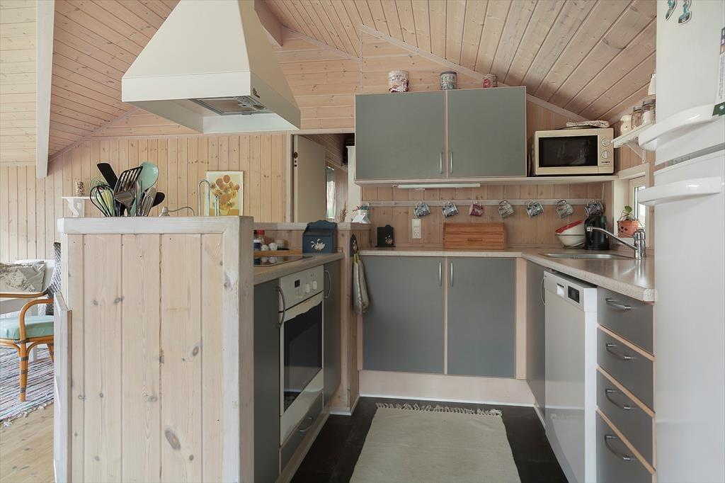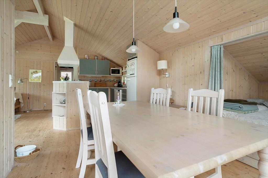 I køkkenalrummet finder I alt, hvad I behøver til at lave lækker mad, herunder en komfur, køleskab, kaffemaskine, elkedel og mikroovn. Når I ønsker at nyde hyggen ved brændeovnen, er der også mulighed for det.