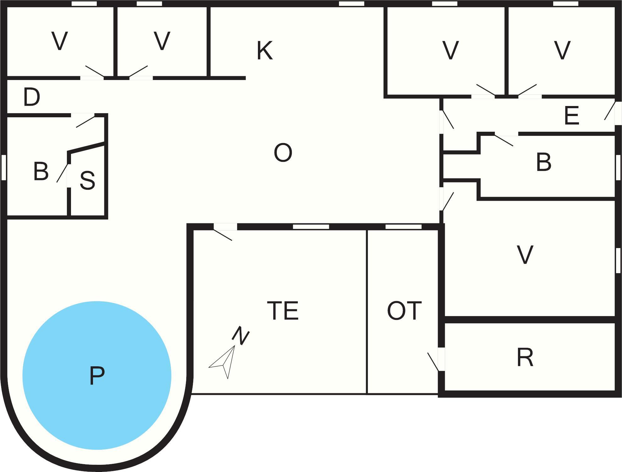5 Soveværelser: (1DS)+(1DS)+(1DS)+(1DS)+(1DS), barneseng