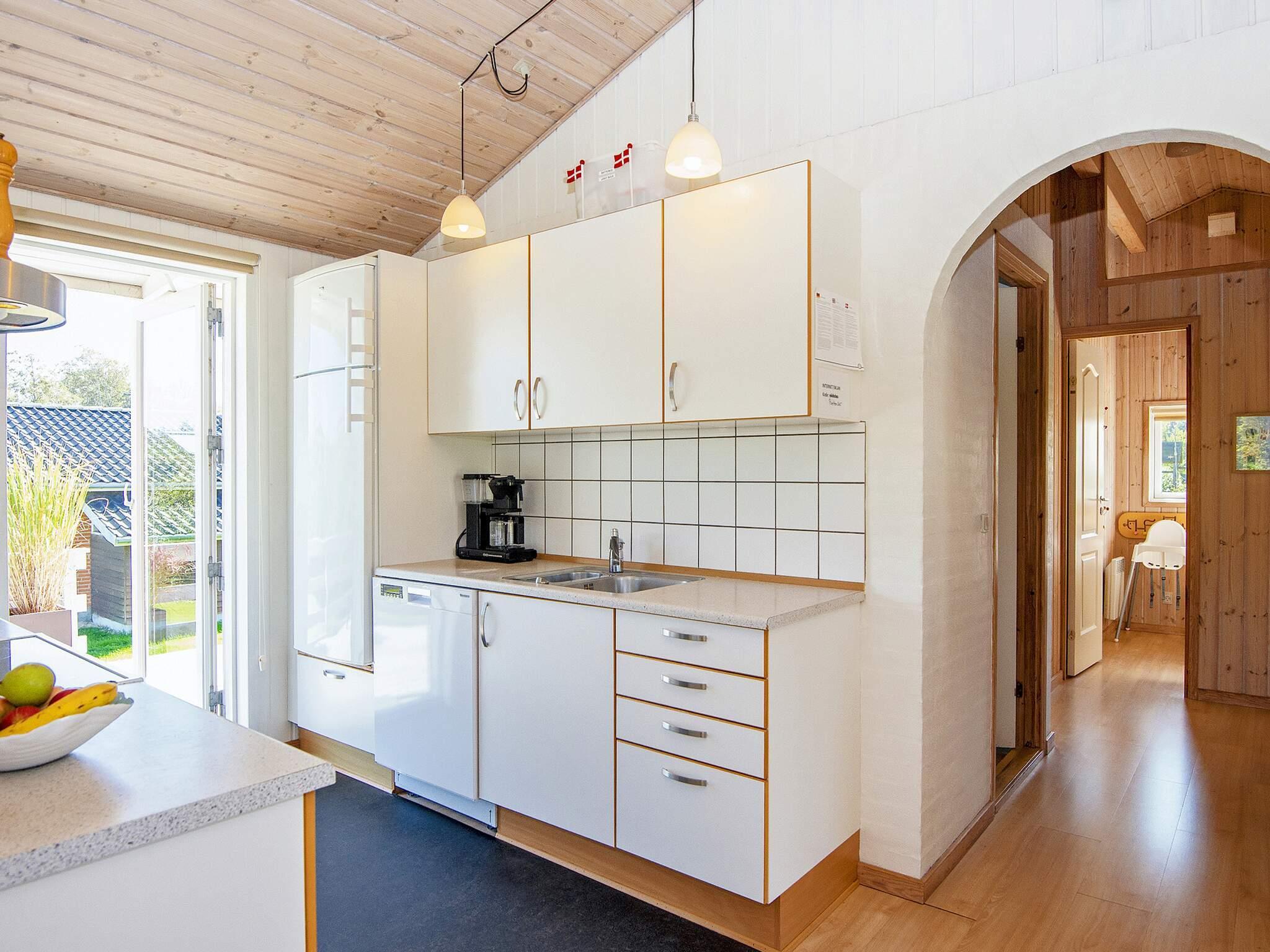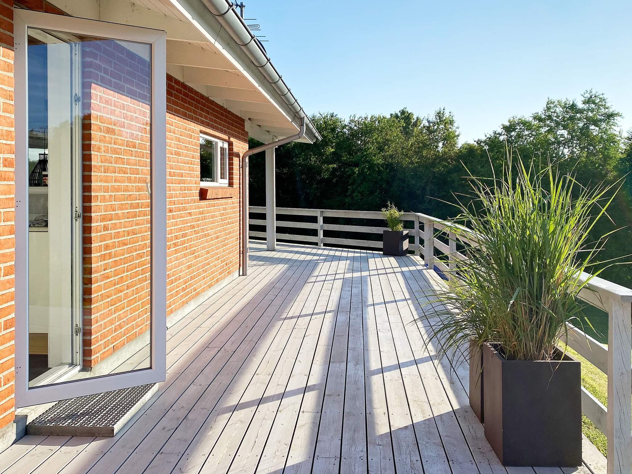 Den overdækkede terrasse er ideel til udendørs måltider og hyggelige aftener, med uhindret udsigt til det grønne omkring ejendommen. Børn kan nyde rutsjebanen ind i haveområdet eller lege på stedets gynger, mens voksne kan slappe af på solbeskinnede steder eller nyde deres eftermiddagskaffe udendørs. En skøn, børnevenlig strand ligger kun få hundrede meter fra huset, som byder på muligheder for badning, sandslotsbyggeri og badehygge.