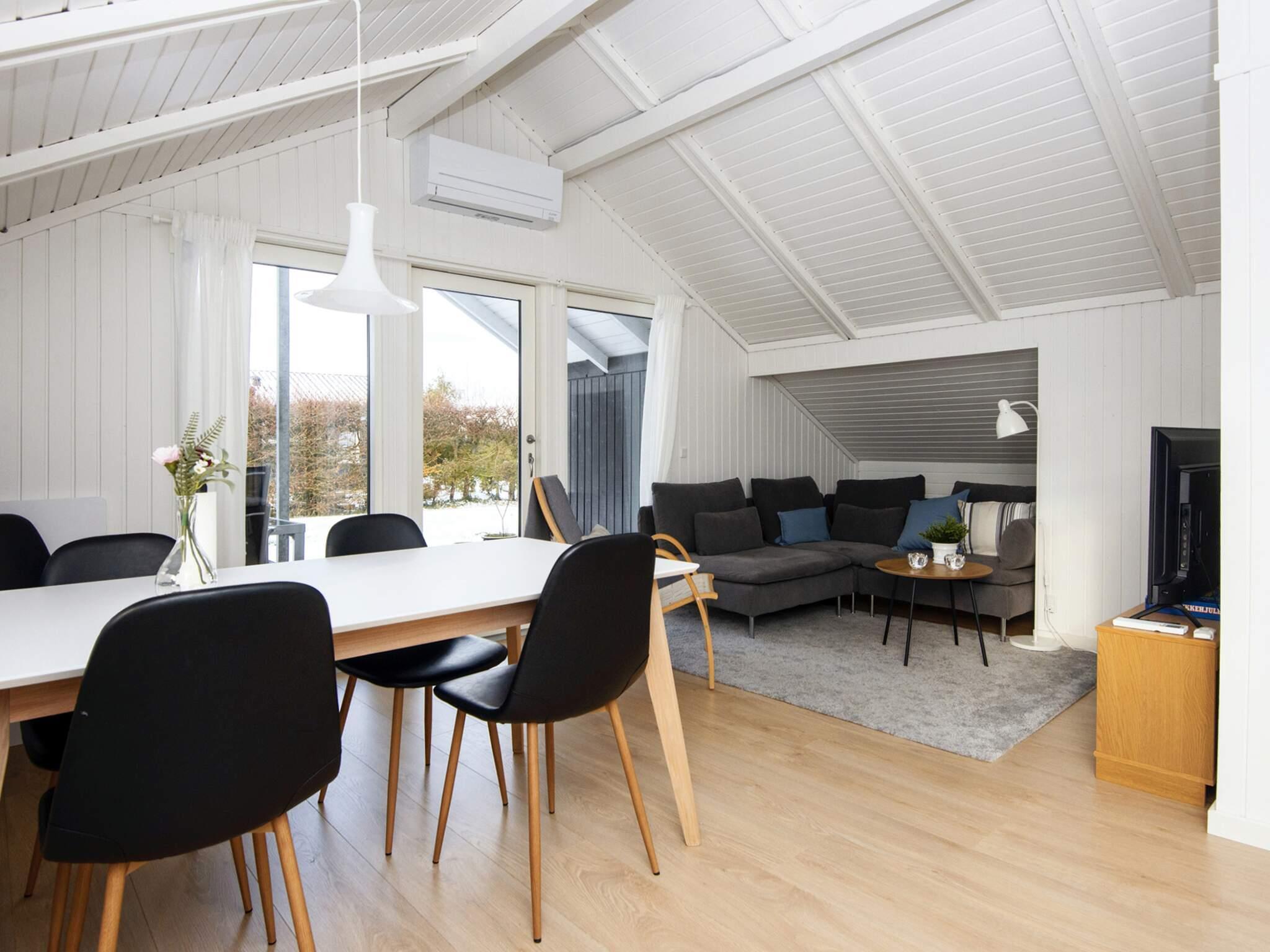 Huset har to soveværelser, hver med to senge, samt et separat anneks på 14 m² med dobbeltseng, der giver fleksible sovearrangementer. Køkkenet i åbent plan har en opvaskemaskine, mens badeværelset er udstyret med en vaskemaskine for ekstra bekvemmelighed. Familie-/spiseområdet har et bord til seks, og stuen er lys og indbydende med et Chromecast-kompatibelt tv til at streame dit eget indhold. Fra stuen har gæsterne direkte adgang til en overdækket terrasse, ideel til at slappe af eller nyde en grill. Et praktisk bryggers med stort køle/fryseskab tilføjer yderligere komfort.