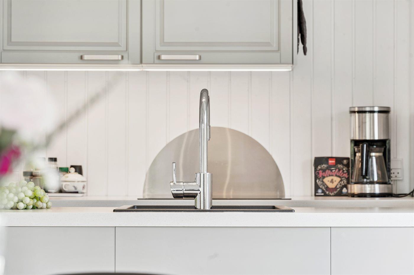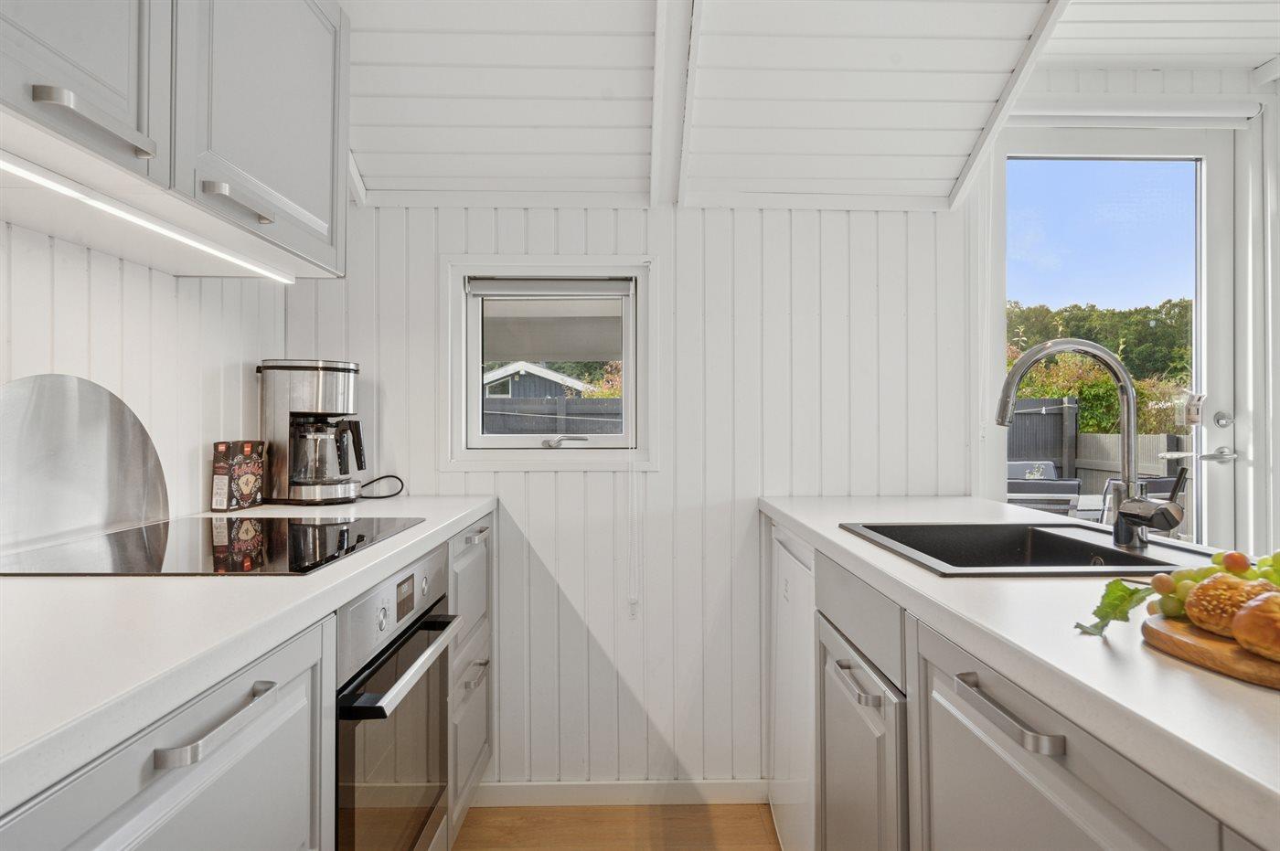 Køkkenet er udstyret med 2 køleskabe. Der er 4 induktionskogeplader, varmluftovn, mikrobølgeovn samt opvaskemaskine.