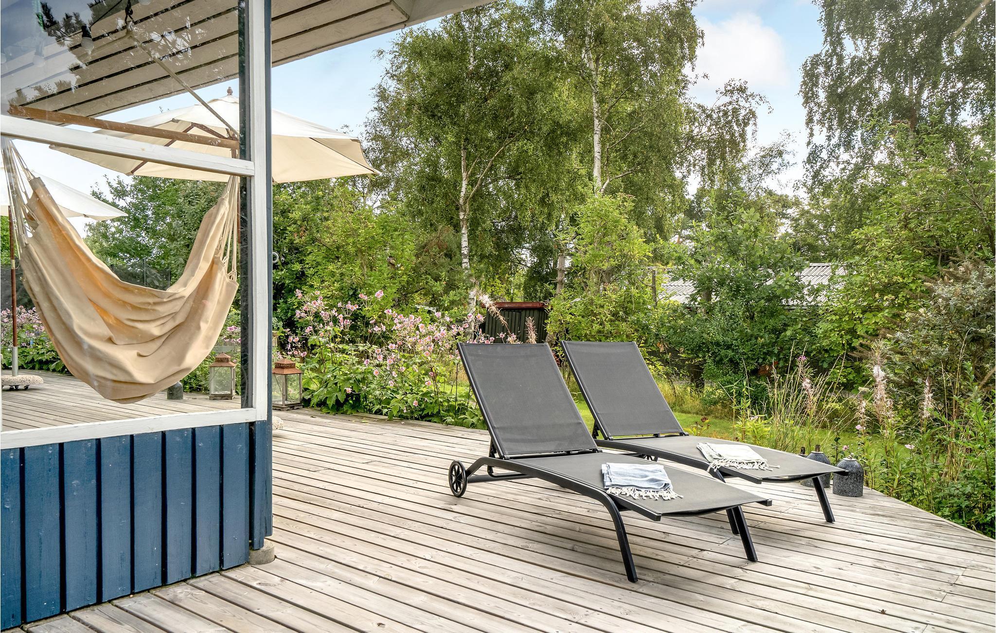 Huset byder på et behageligt design med et stort åbent opholdsrum, komfortable siddepladser samt vinduespartier, der sørger for godt med naturligt lys. Lav morgenmad sammen og nyd den på den delvist overdækkede terrasse, hvor der er frisk luft og ofte solskin. Atmosfæren i huset er varm og lys, hvilket giver en hyggelig og hjemlig følelse. Der er også et spa og en sauna til rådighed, hvor I kan komme helt ned i gear. Haven inviterer også til aktiviteter i ferien, f.eks kan I lave snobrød over bål sammen med vennerne eller familien.
