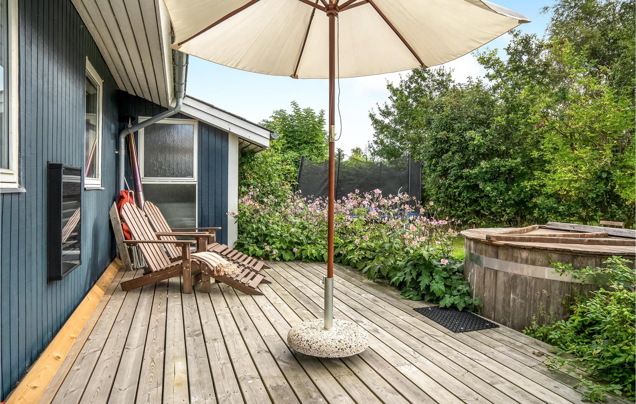 Hyggeligt feriehus med spa, sauna og privat have, beliggende i rolige omgivelser tæt på strand.