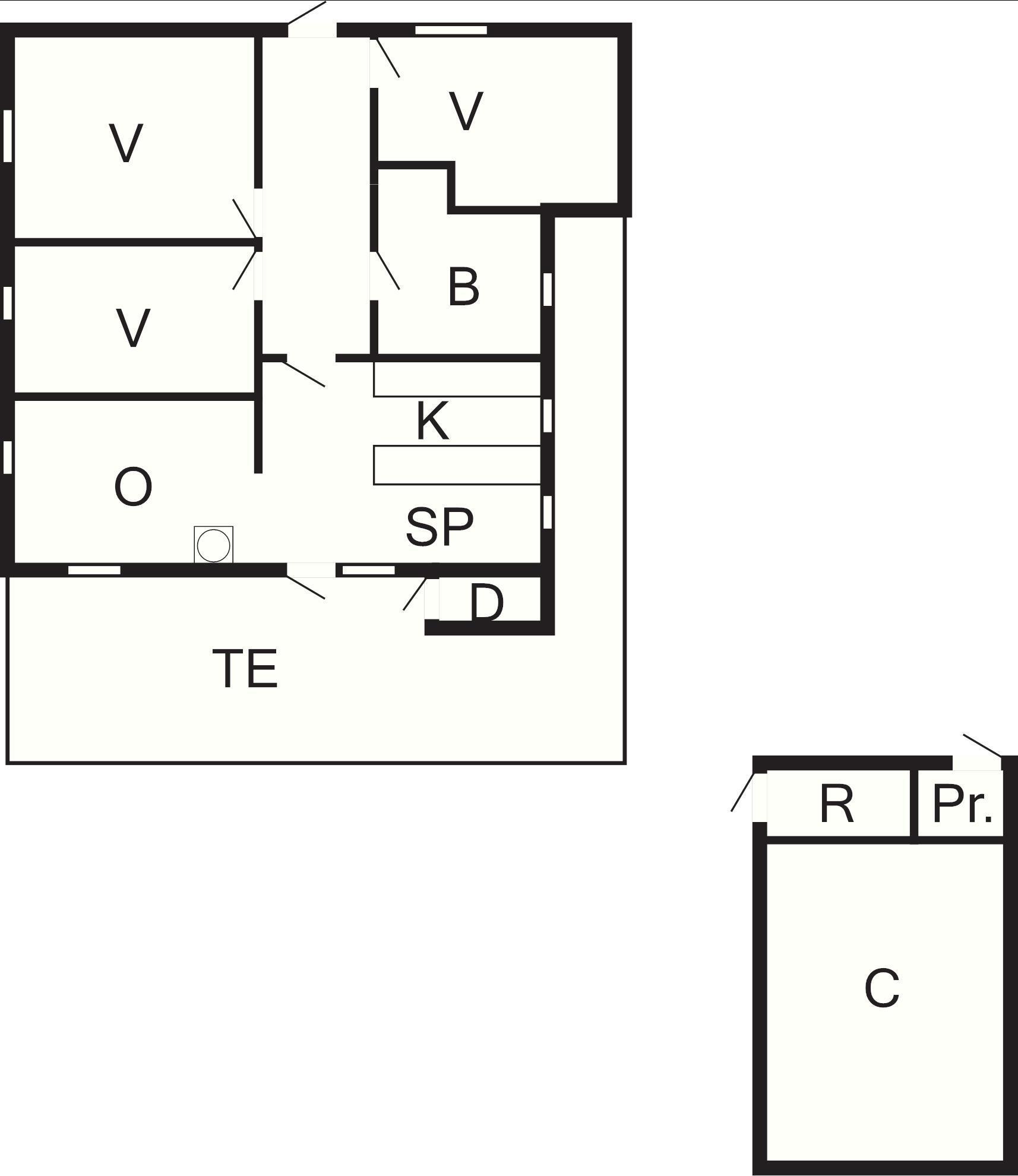 1 Opholdsstue: Brændeovn, stereoanlæg med cd, dvd-afspiller, tv, parabol, høj stol