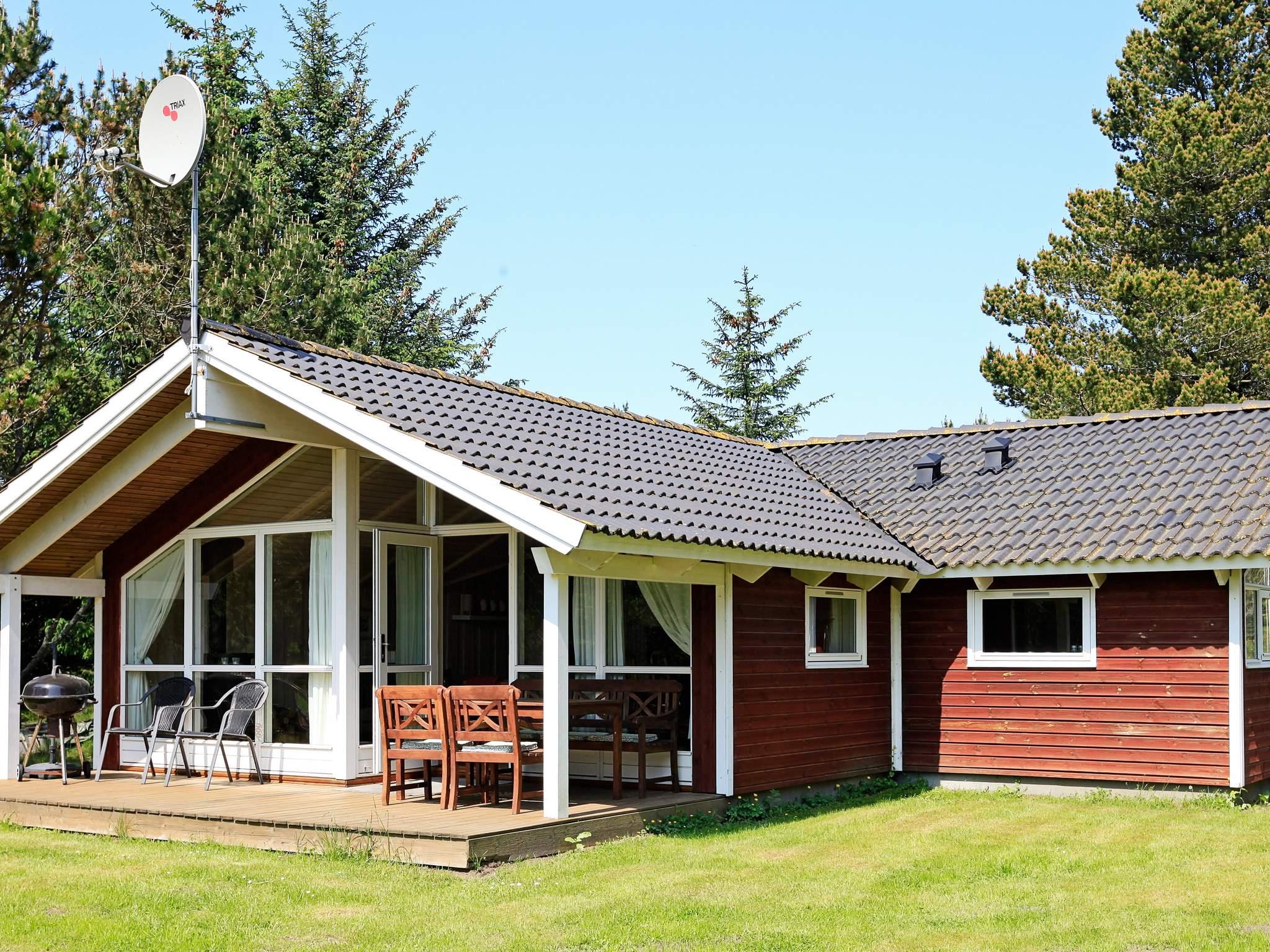 Sommerhus med spabad og sauna beliggende lige op til den populære Golfbane Hvide Klit. Huset er godt indrettet med stort køkken/alrum, hvor hele familien kan hygge sig og fra spisepladsen kan I følge med i det rige dyreliv, der er i området. Fra stuen er der udgang til terrassen, som er delvist overdækket, så I kan nyde de lune sommeraftener. Der er gyngestativ og trampolin (benyttes på eget ansvar/forsikring). Der er gode soveværelser samt stort badeværelse med spabad og sauna.